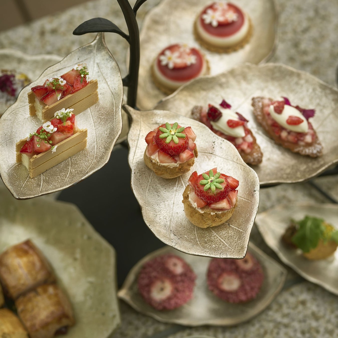 パティーナ大阪の1階に位置するシグネチャーレストランP72では、旬のイチゴを使用したアフタヌーンティーを提供いたします。1年を72に細分する日本の七十二候から着想を得たP72では、“季節の素材を生かす” というコンセプトのもと、冬ならではの恵みにこだわりました。契約農家から届く旬の冬野菜や果実をふんだんに取り入れ、ホテルシェフが素材本来の香りや甘みを引き出すよう丁寧に仕上げた軽やかなセイボリーと、苺の瑞々しさを際立たせた華やかなスイーツをお楽しみいただけます。