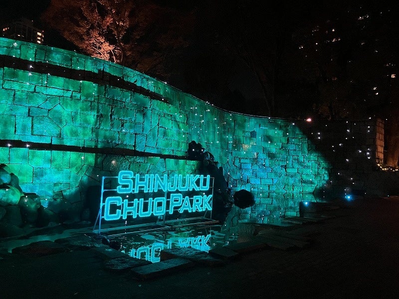 新宿の高層ビル群に囲まれた貴重な緑地空間である新宿中央公園で行われる光のイベントです。