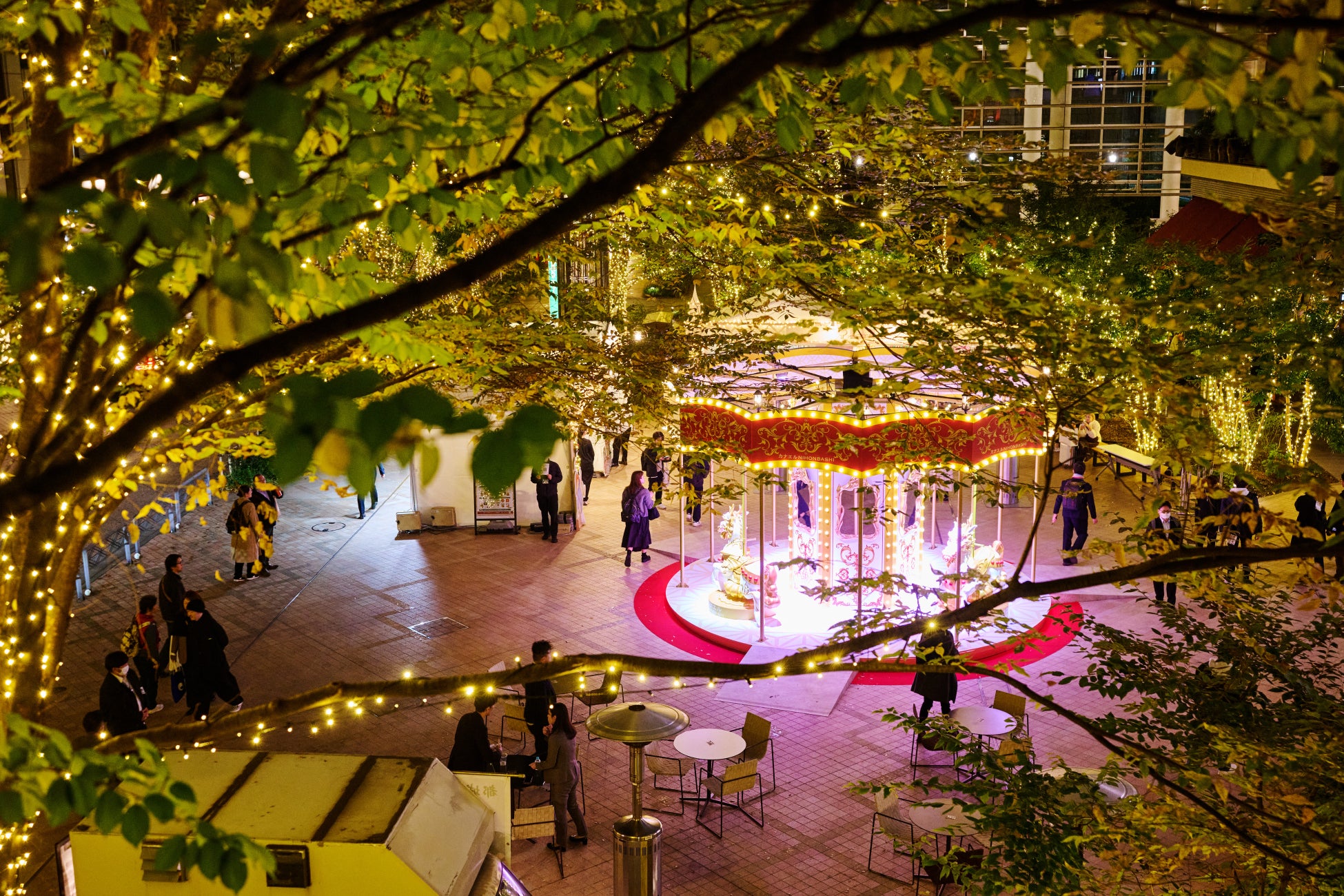 日本橋エリアのイルミネーションは、中央通り沿いの施設ライトアップに加え、街路に植えられた街路樹など、都市の「みどり」を立体的な装飾の土台として活用しています。コレド室町テラス大屋根広場では、シンボルの煌めく“麒麟ゴーラウンド”や開運日に開催の“カナエル推し活ナイトマーケット”などの催し物に巡ることで、歴史ある景観を楽しみながらこの時期だけの素敵な街の装いをお楽しみください。