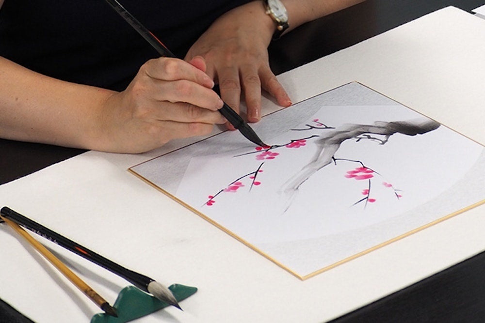国際墨画会副会長・石坂美穂氏による月替わりに四季折々のテーマで水墨画を学ぶレッスン。デモンストレーションと水墨画の歴史や筆法を交えたレクチャーを交えたレッスンは、筆の動きに身をゆだね、水墨画で四季を愛でるひとときを楽しめます。