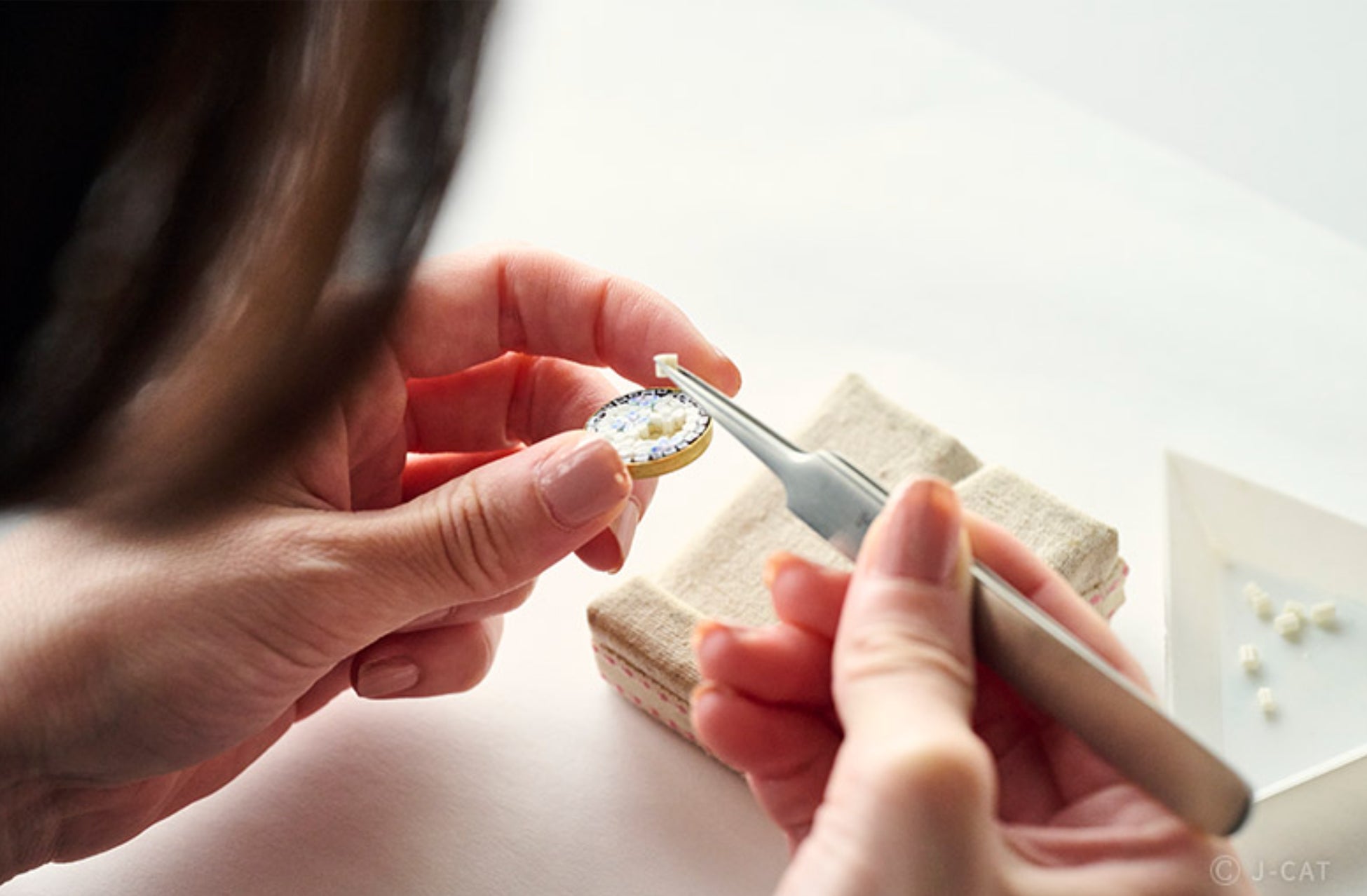 ガラス工芸「ミクロモザイク」の作家夫妻が営むガラス工房「海津屋」を貸し切り、世界にひとつだけのアクセサリーを制作するOtonami限定プラン。この体験でしかないデザインのペンダントトップ、もしくはピンブローチを自由な感性で制作します。