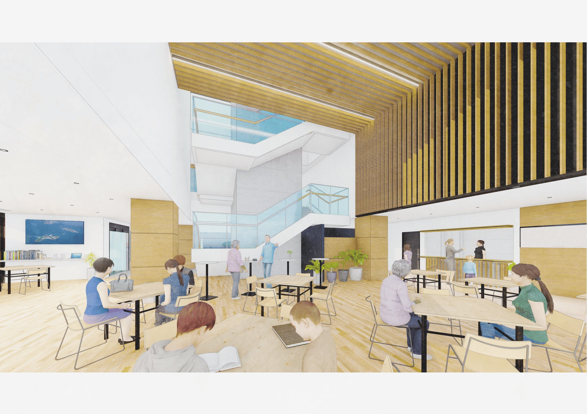 明るく広々とした待合・交流空間により、船待ちや日常利用に