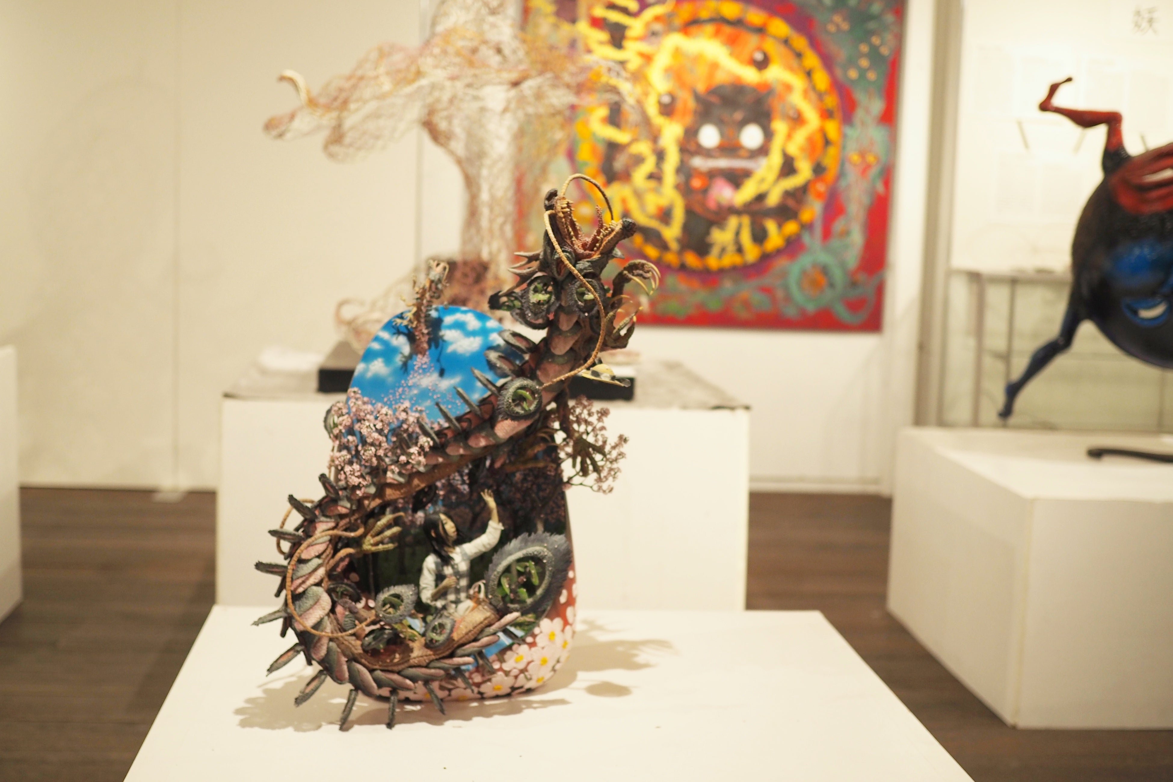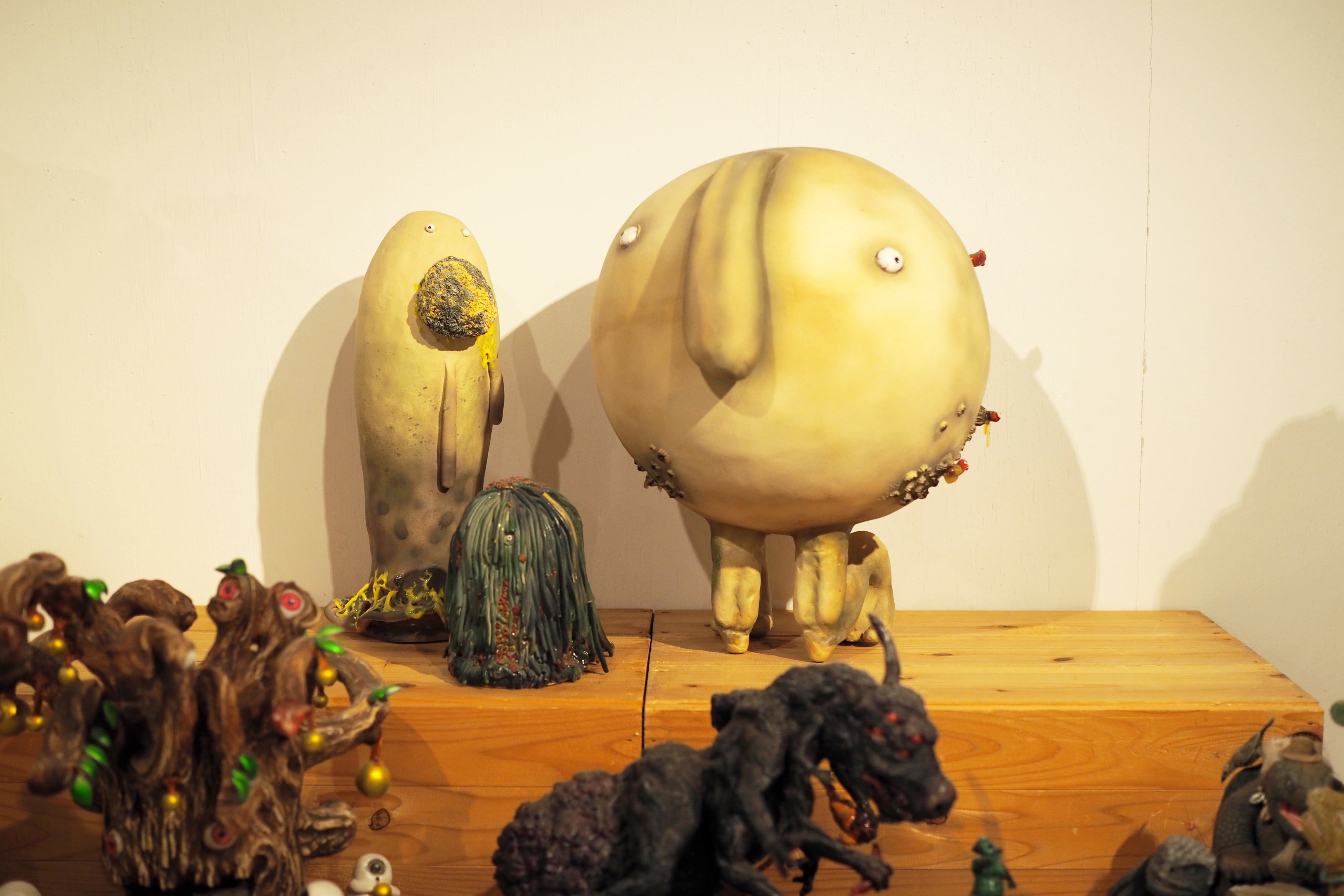書籍『POP YOKAI』に掲載されている妖怪造形作品の中から約100体の妖怪を前期と後期の2期に分けて展示します。展示される妖怪造形は、いずれも現代の作家たちによって新たに生み出された妖怪です。また、妖怪は妖怪研究家の香川雅信氏による解説付きで展示されます。