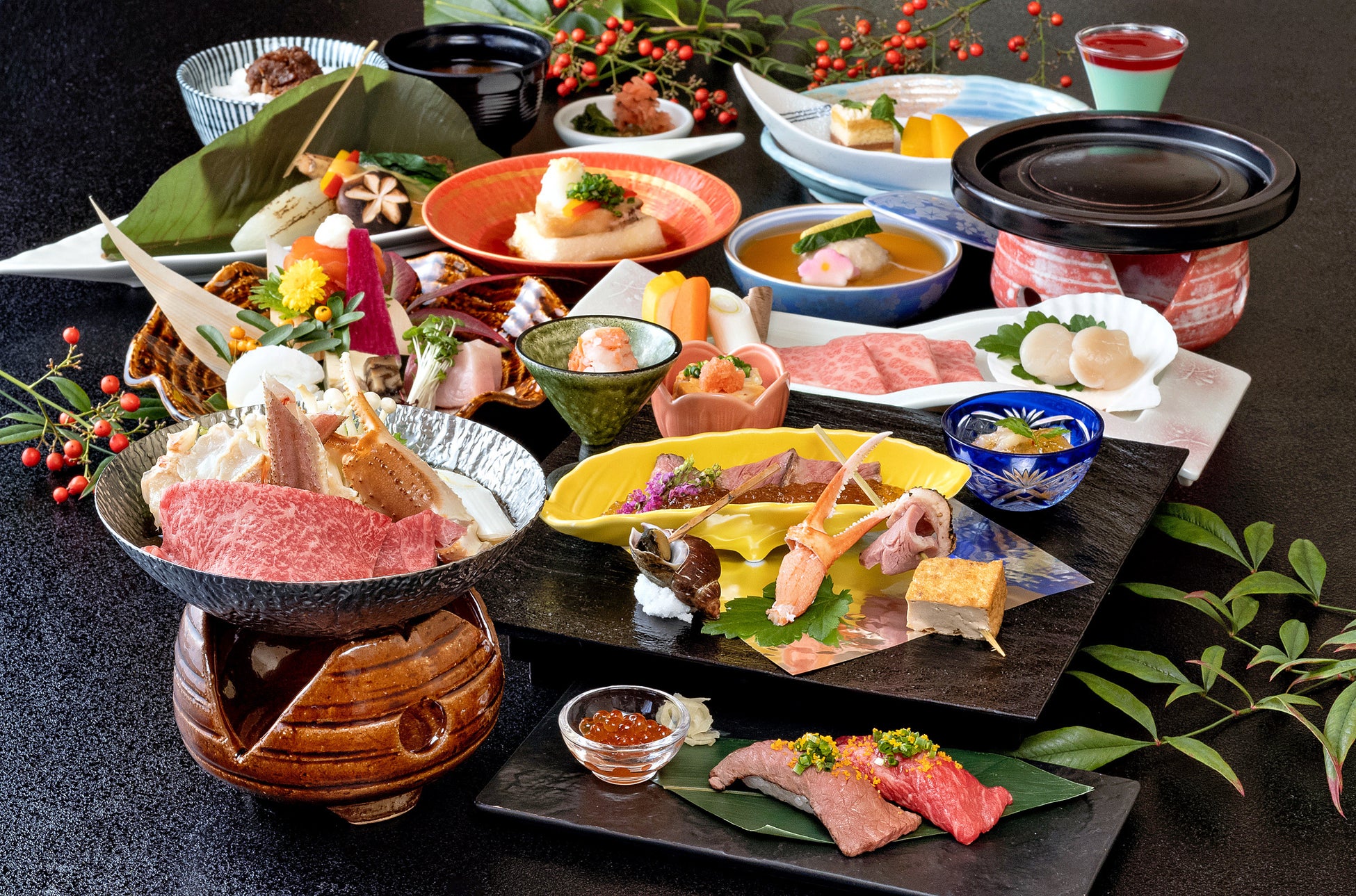 ※通常会席のほか、北の海の幸と飛騨の極上肉を掛け合わせた