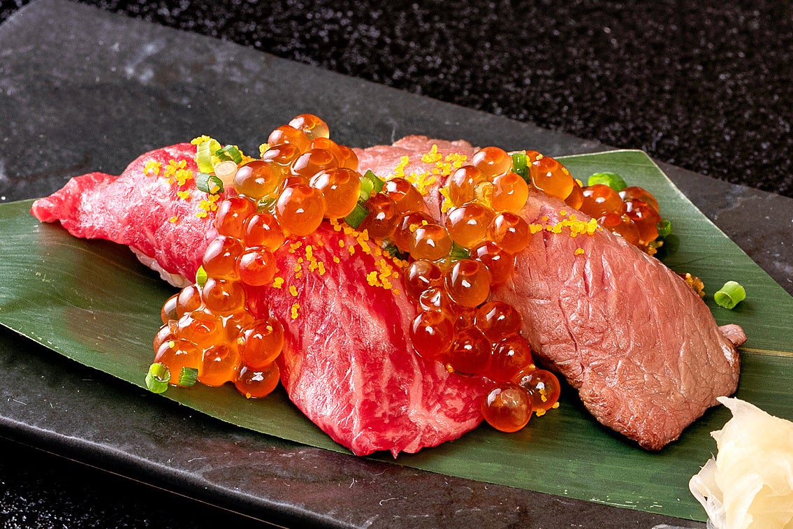 A5ランク飛騨牛の炙り肉寿司といくらの贅沢な一皿