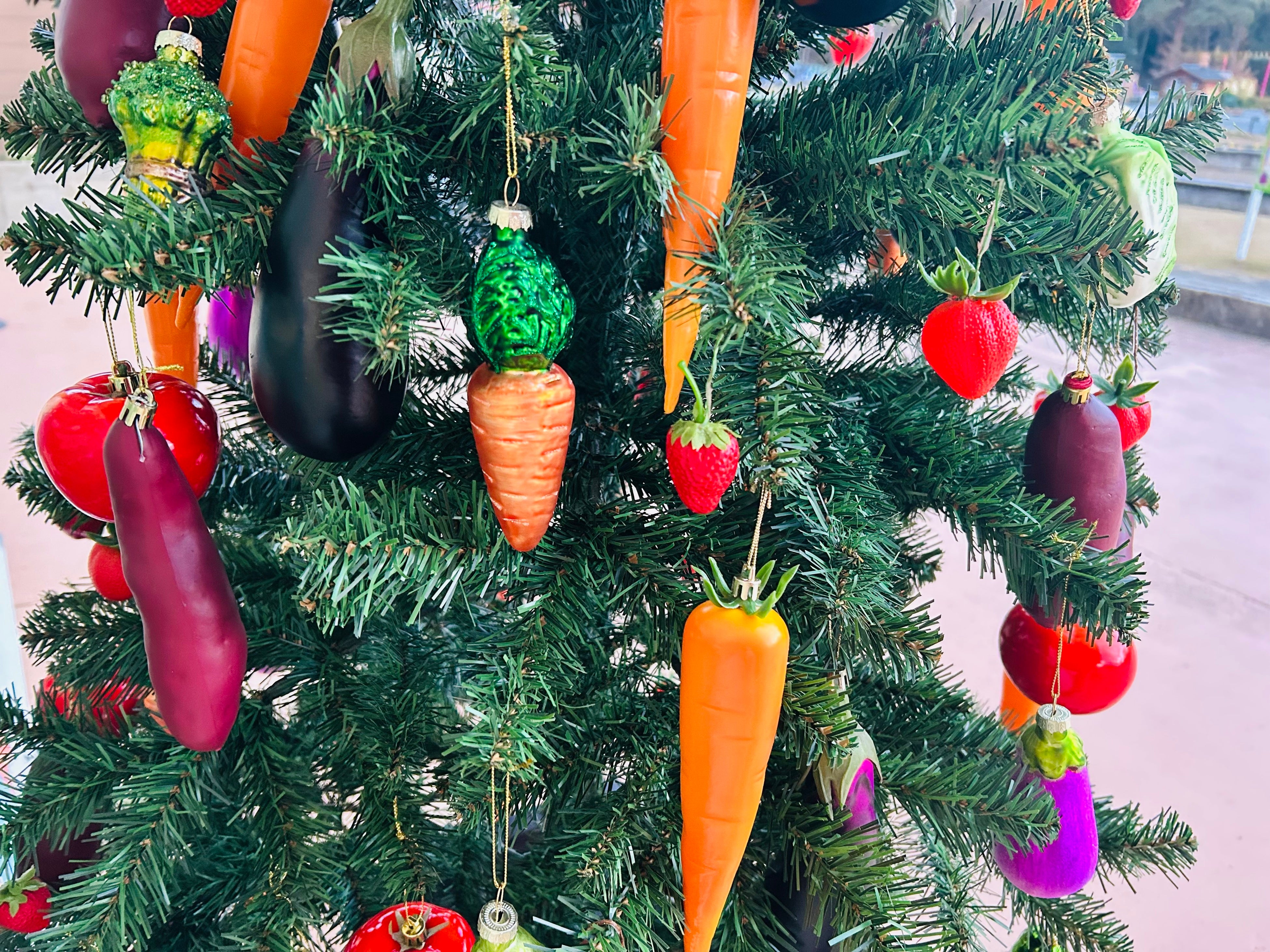 〈内容〉お野菜オーナメントがたくさん飾ってあるとってもかわいいツリーを飾っているよ♪