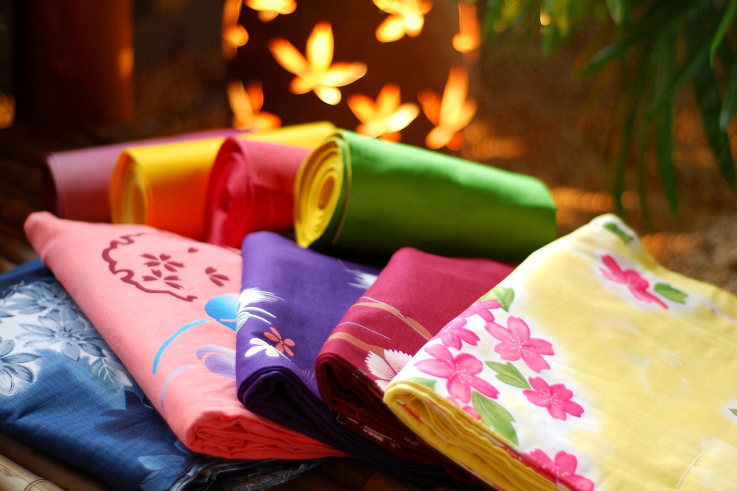 ・選べる色浴衣&帯、羽織、ストール、湯かご他