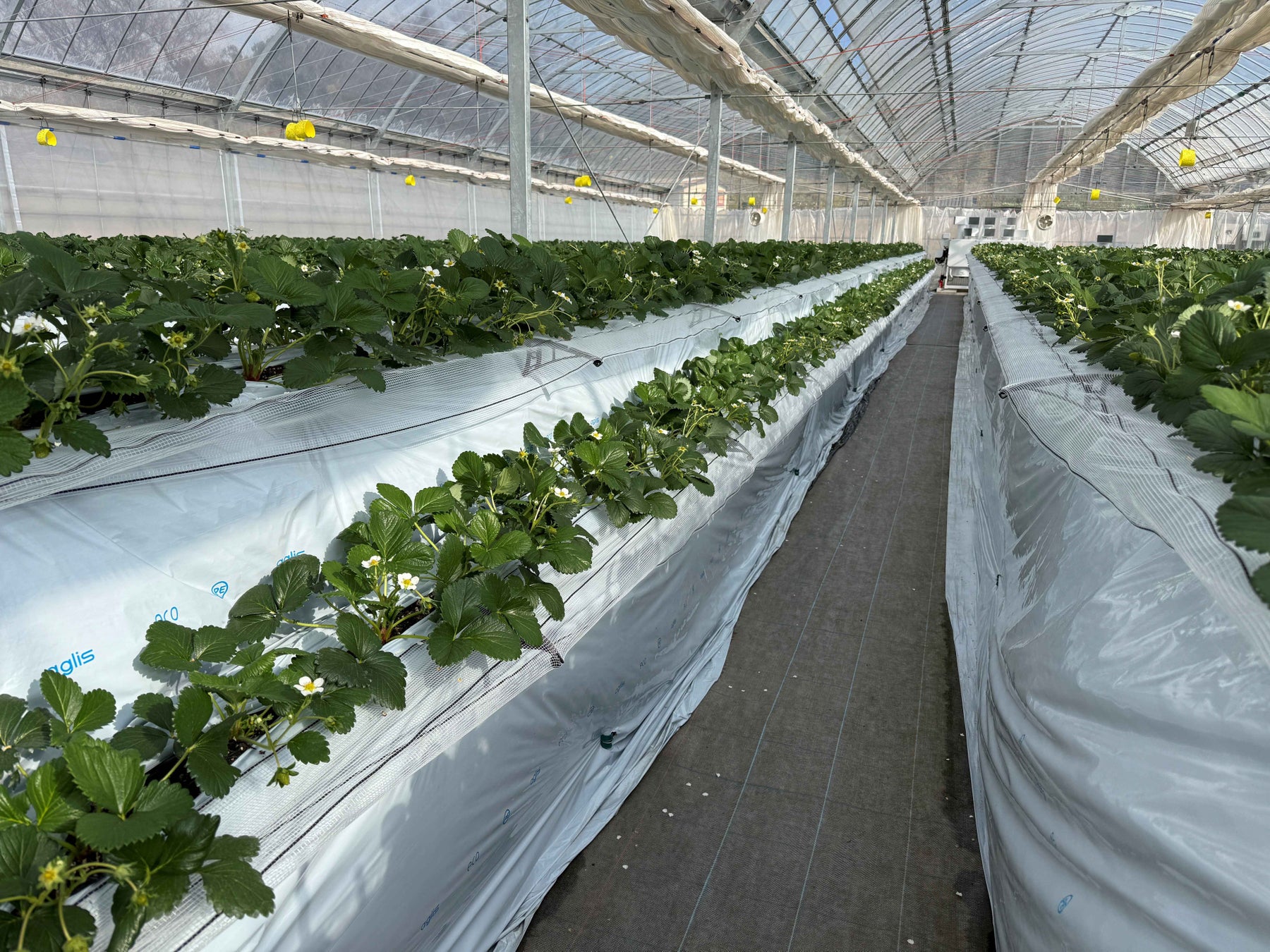 いちごが約1メートルの高さに育てられるため、収穫時にしゃがむ必要がありません。