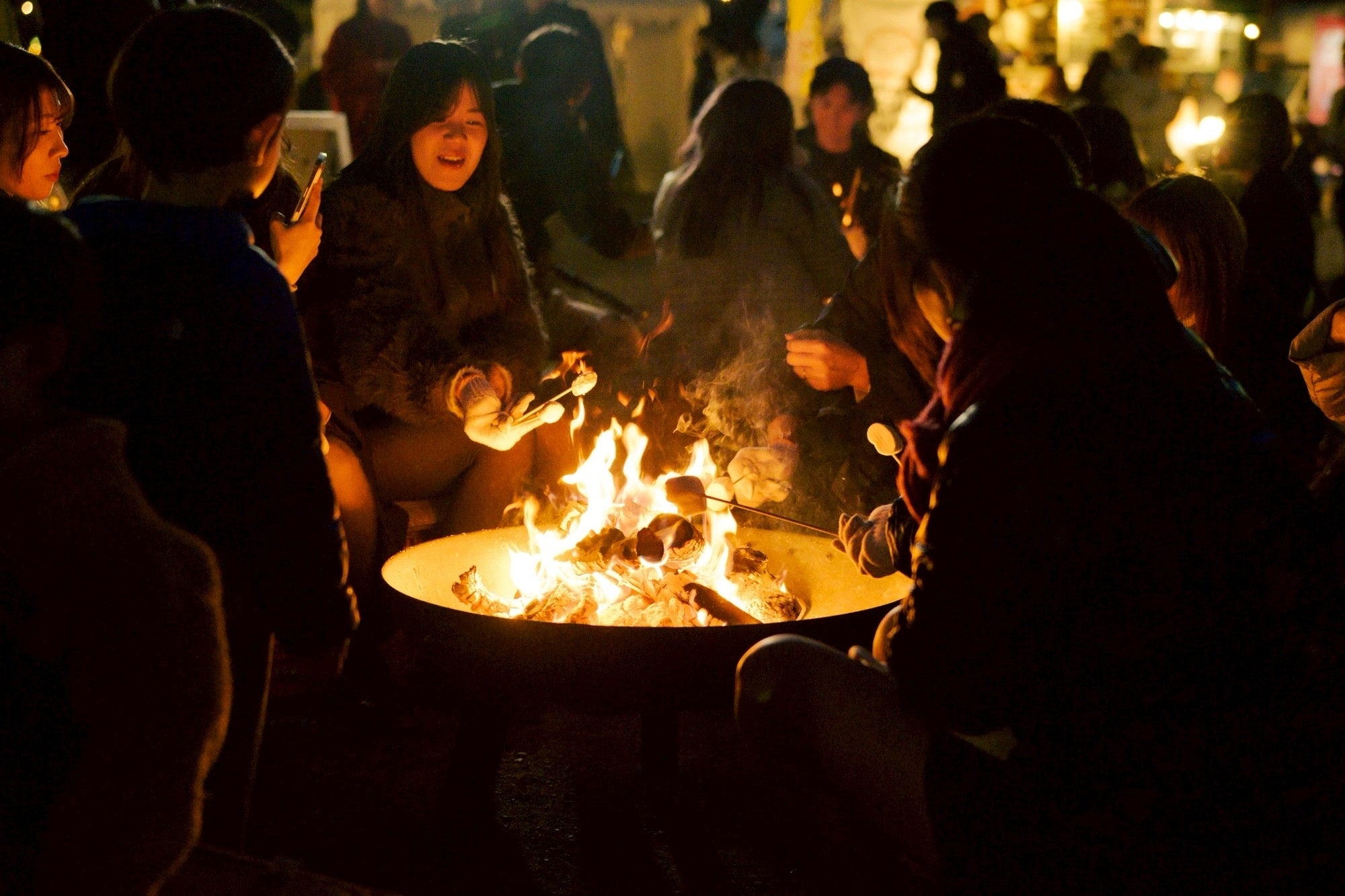 ■ 焚き火で心も体もあたたまるひとときを。マシュマロ焼き体験(雨天開催)初日金曜日には多くの賑わいが