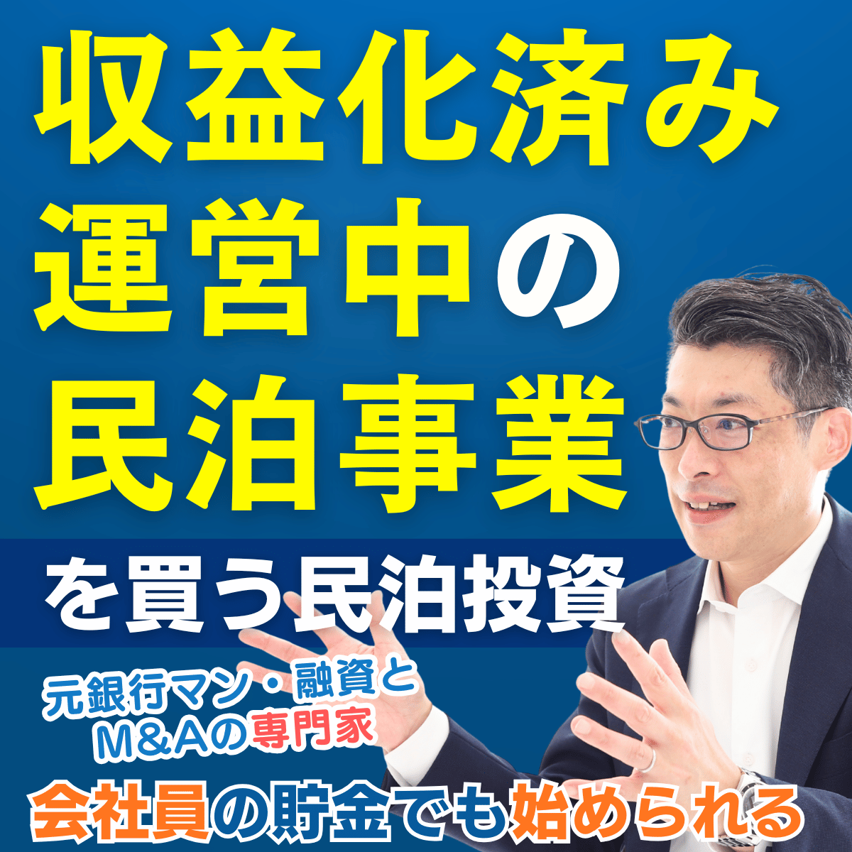 田中の民泊投資では、収益化済み・運営実績のある稼働中の民泊事業を少額資金から買う方法から売却イグジット、資産拡大のための融資戦略まで民泊M&A投資の全てに対応しています。