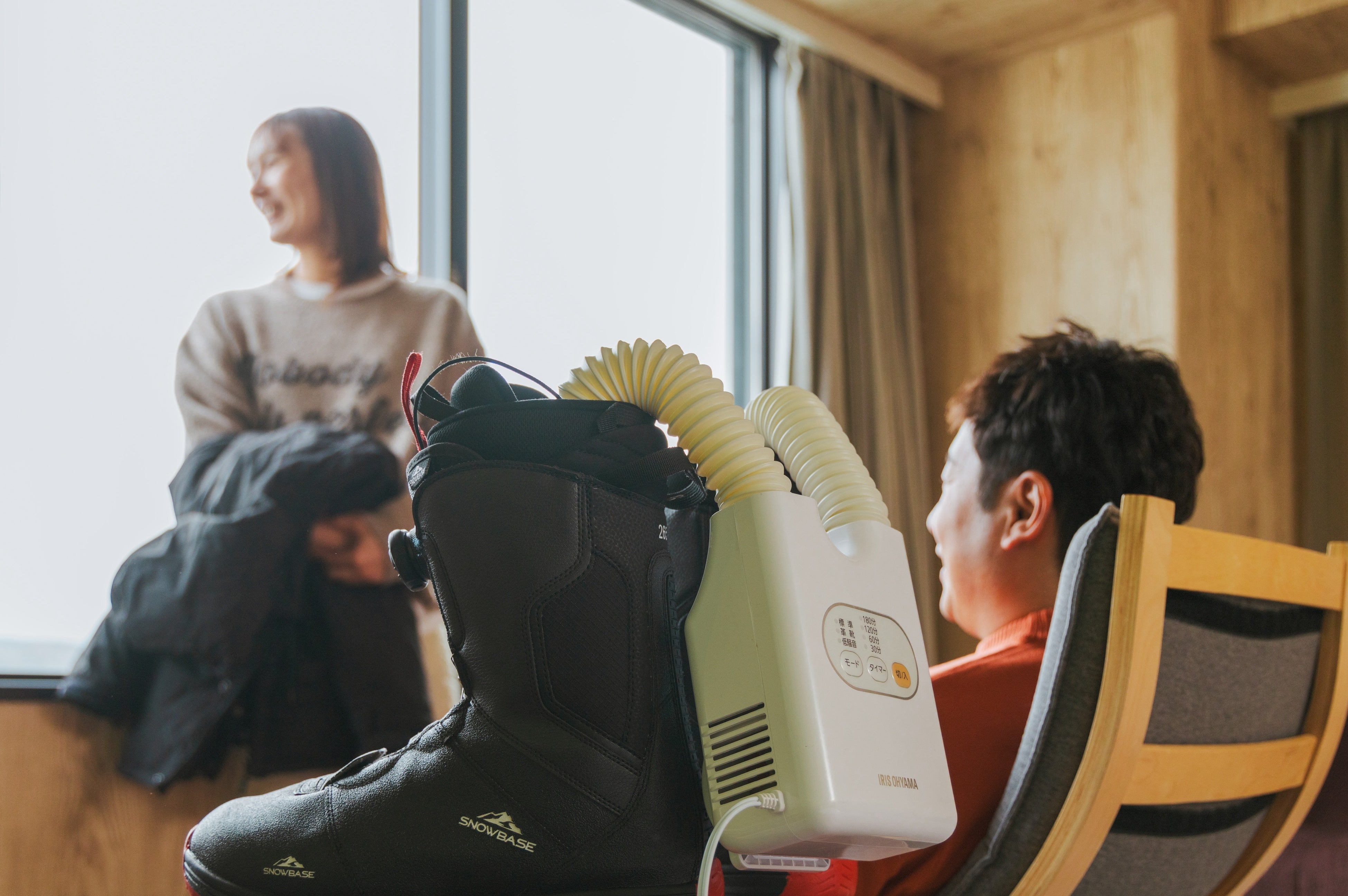 マイスキー・マイボードをお持ちのお客様は、館内の専用ラックまたはロッカースペースで安心して保管できます。また、滑走後に利用できるサービスとして、ブーツドライヤーや足元を温める足湯器をフロントにて無料で貸し出します。濡れたブーツをしっかり乾燥させ、雪山で冷えた足先を温めて疲れを軽減することで、翌日も万全のコンディションで滑走を楽しめます。