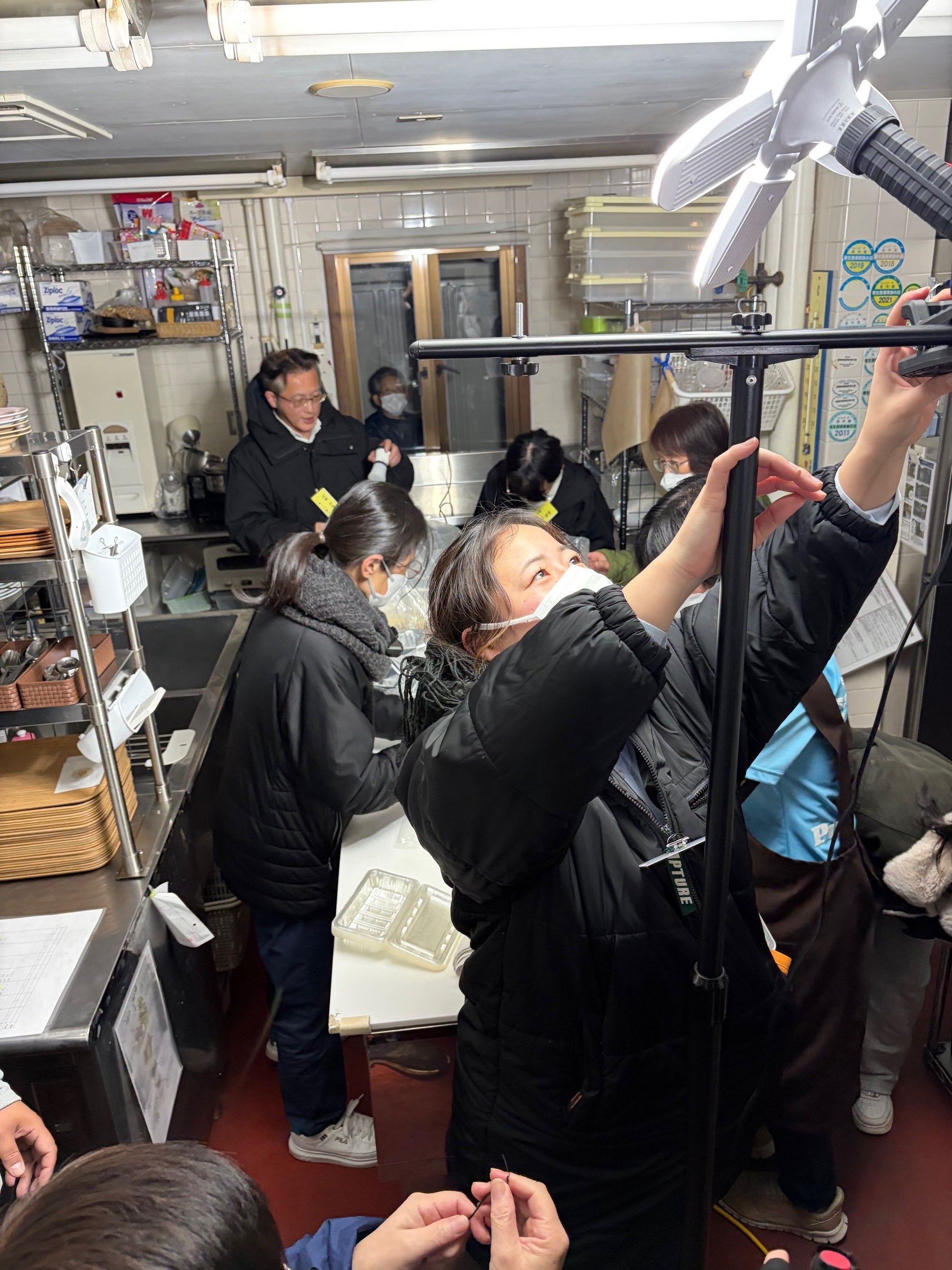 すべての訓練を終了後、参加者はレストラン「アスール」に集合し、おこわと豚汁を試食。その後、班ごとに分かれて意見交換会を行い、現場で感じた課題や改善点が率直に共有されました。