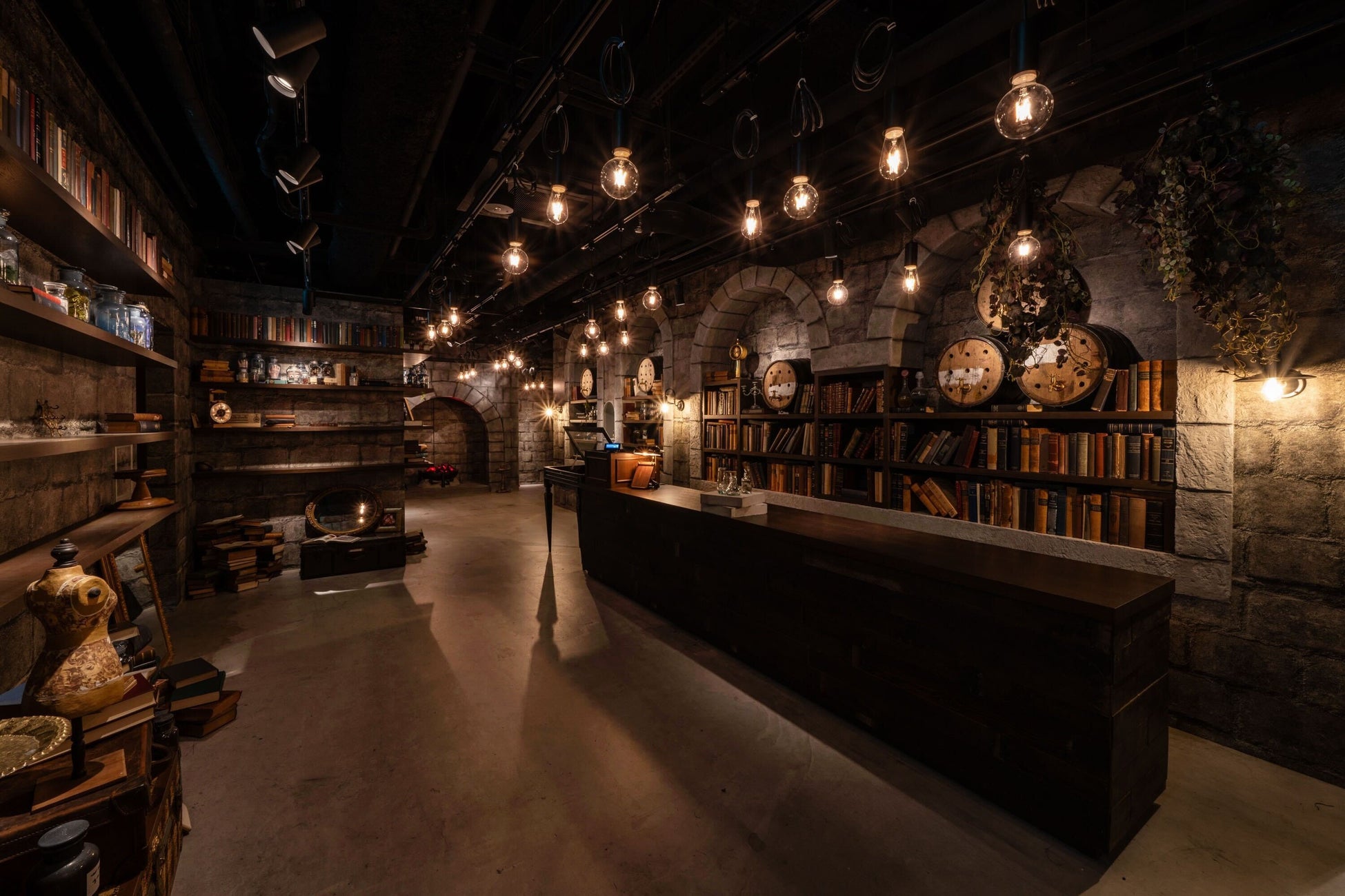 施設入口には壁一面に無数の絵画が並び、その中に隠された“秘密の入り口”を見つけることで、来場者は魔法世界へと導かれます。エントランス空間では、各コンテンツのチケット販売のほか、オリジナルドリンクや限定グッズの購入が可能です。