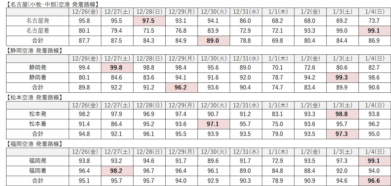 2025年度年末年始期間[2025年12月26日(金)~2026年1月4日(月)]の12月22日(月)時点での