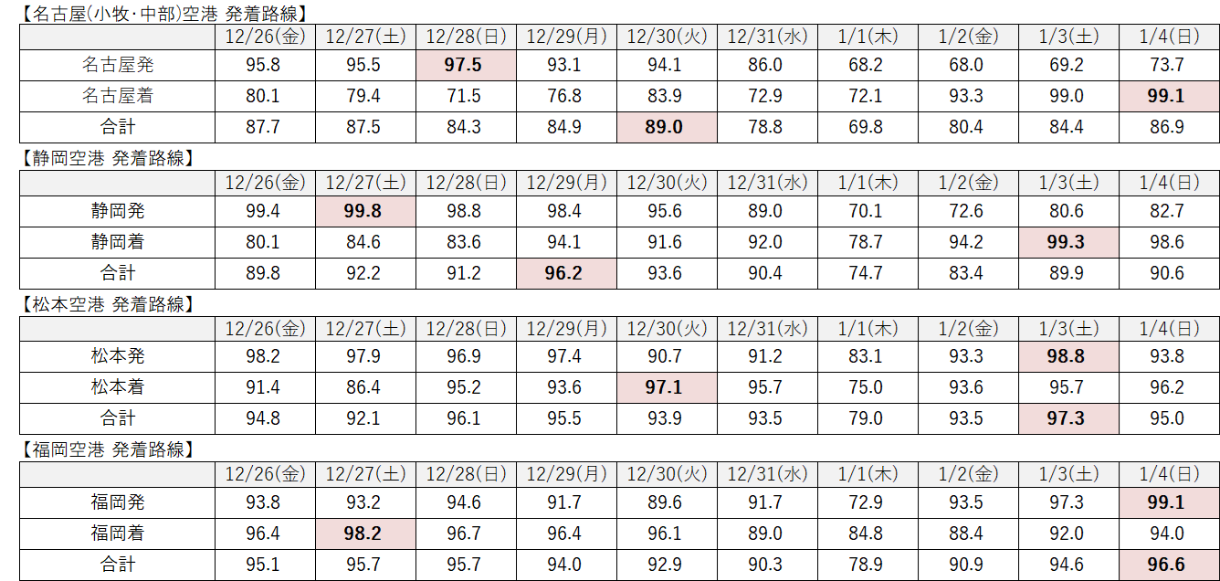 2025年度年末年始期間[2025年12月26日(金)~2026年1月4日(月)]の12月22日(月)時点での