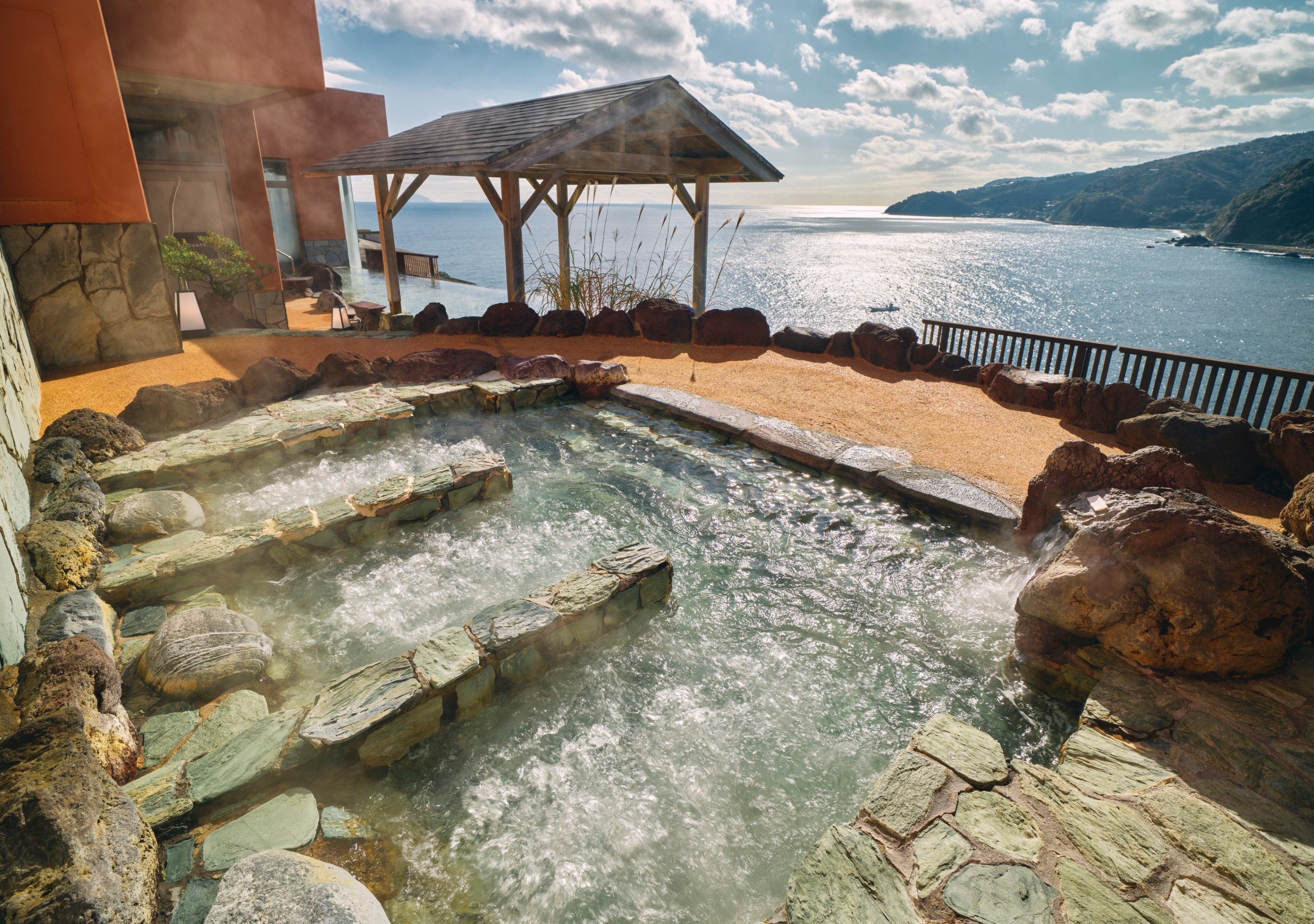 カトープレジャーグループ(東京本社/東京都港区・代表取締役社長 兼 グループCEO/加藤宏明)は、赤沢温泉郷敷地内に位置する、温泉施設「赤沢日帰り温泉館」(静岡県伊東市)に関しまして、2025年12月24日(水)より、太平洋と一体になれる眺望抜群の大露天風呂をはじめとした温泉設備はそのままに、フロア全体を改修し、より自由におくつろぎいただける「海のねころびラウンジ」や心地よい温度でじんわり身体を温める「温暖浴」を新設し、リニューアルオープンすることをお知らせいたします。
