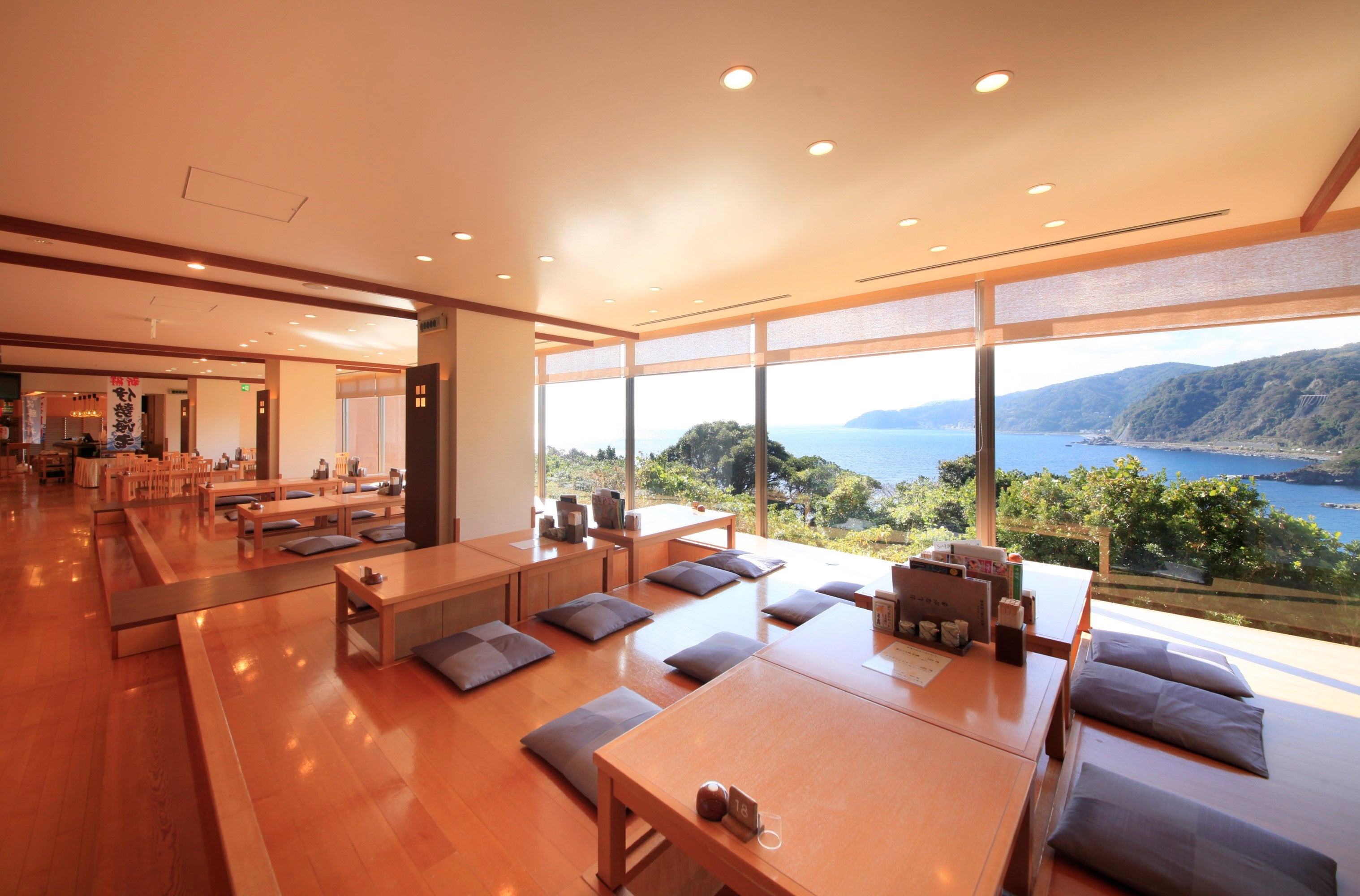 「赤沢日帰り温泉館」内のレストラン「湯羅(ゆら)」では、海が広がるロケーションを眺めながら、赤沢の海鮮や地元食材を中心に、丼ものや麺類、一品料理など多彩なお料理をお楽しみいただけます。素材がもつ魅力を引き出すために、料理人が一品一品にこだわりを込めたお料理をご堪能ください。
