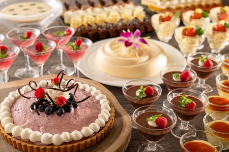 北海道産ハスカップのタルト/ラベンダーゼリー/リンゴの冷製ポタージュ/北海道牛乳プリン/フロマージュムース/カッサータ /フルーツチーズパフェ/フルーツ各種 etc