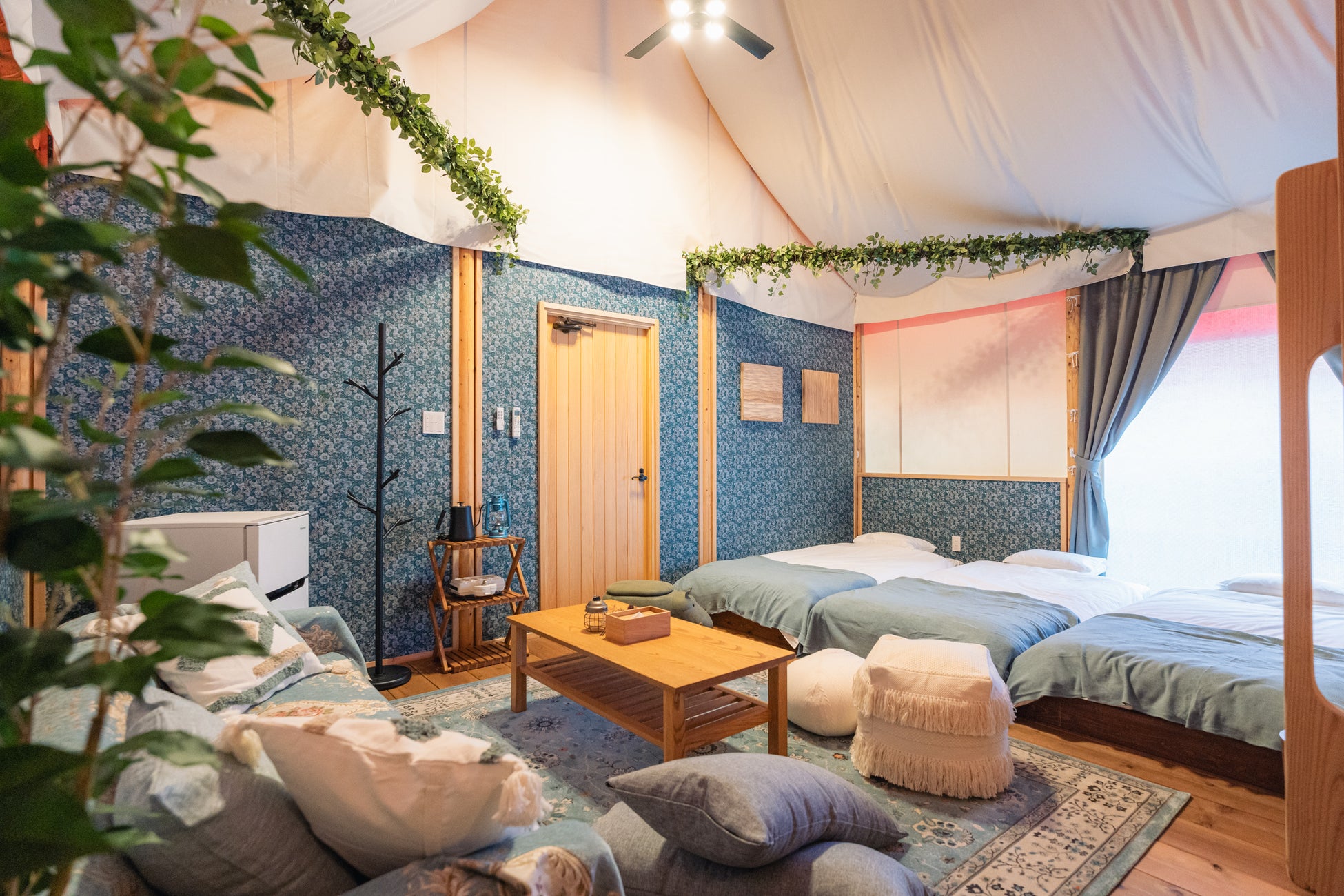 プライベート感あふれるサイトで、グランピングテントや一棟貸しコテージを選んで、静かで落ち着いた時間を過ごせます。