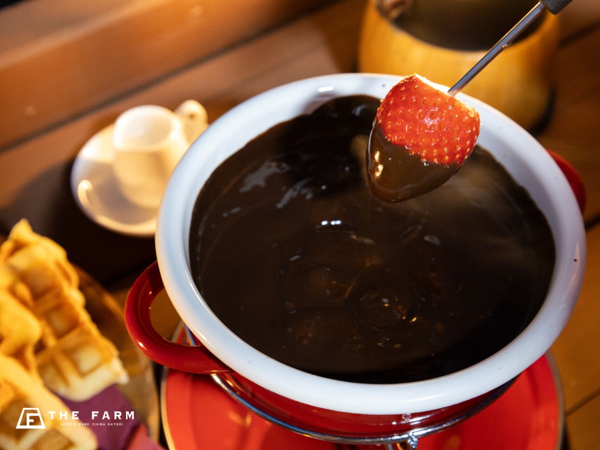 食後のデザートには、「THE FARM星空いちご園」のいちごも味わえるチョコフォンデュをご用意します。