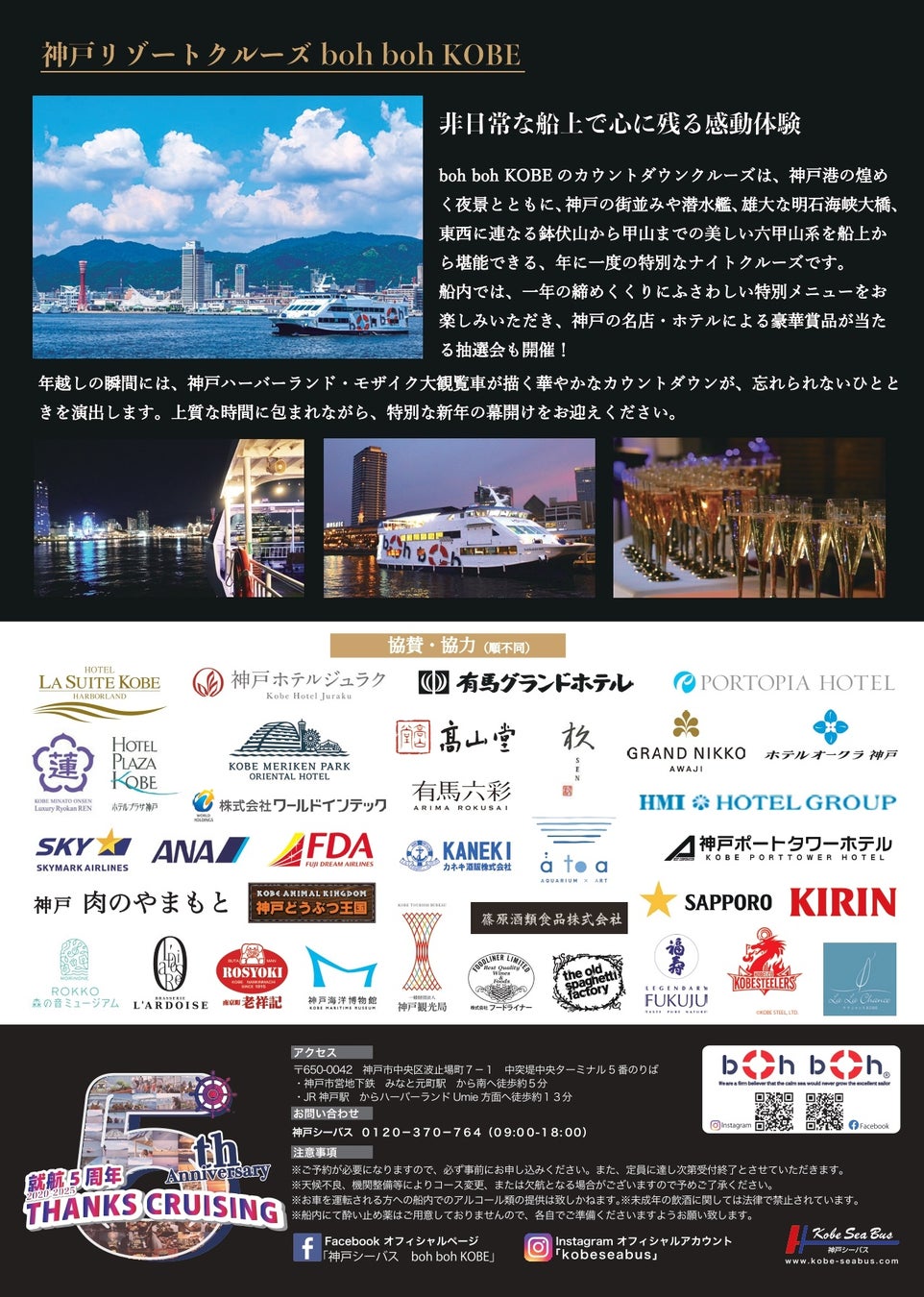 神戸シーバスboh boh KOBEにて『2025-2026 COUNTDOWN CRUISE in boh boh KOBE』を開催いたします!
