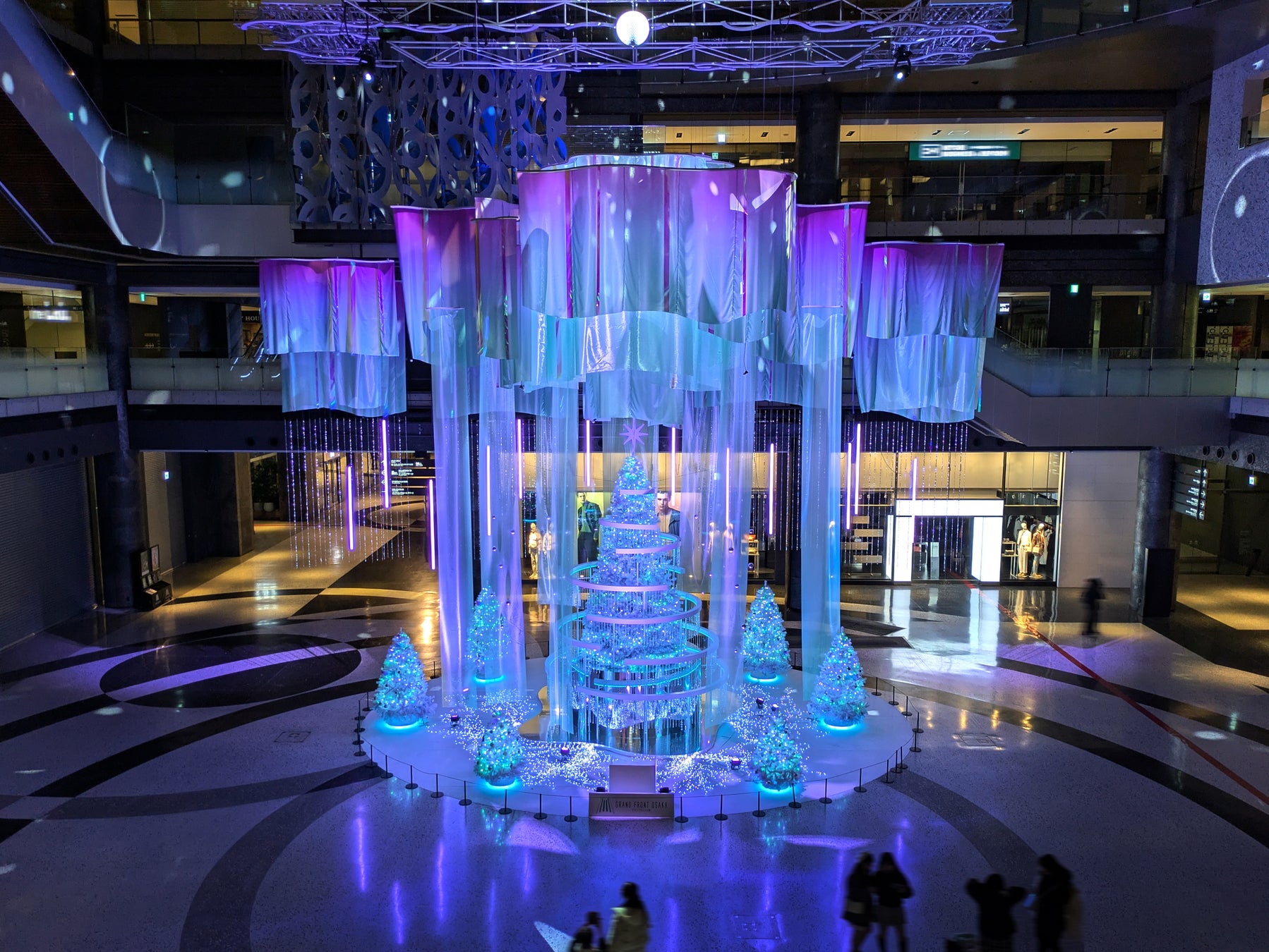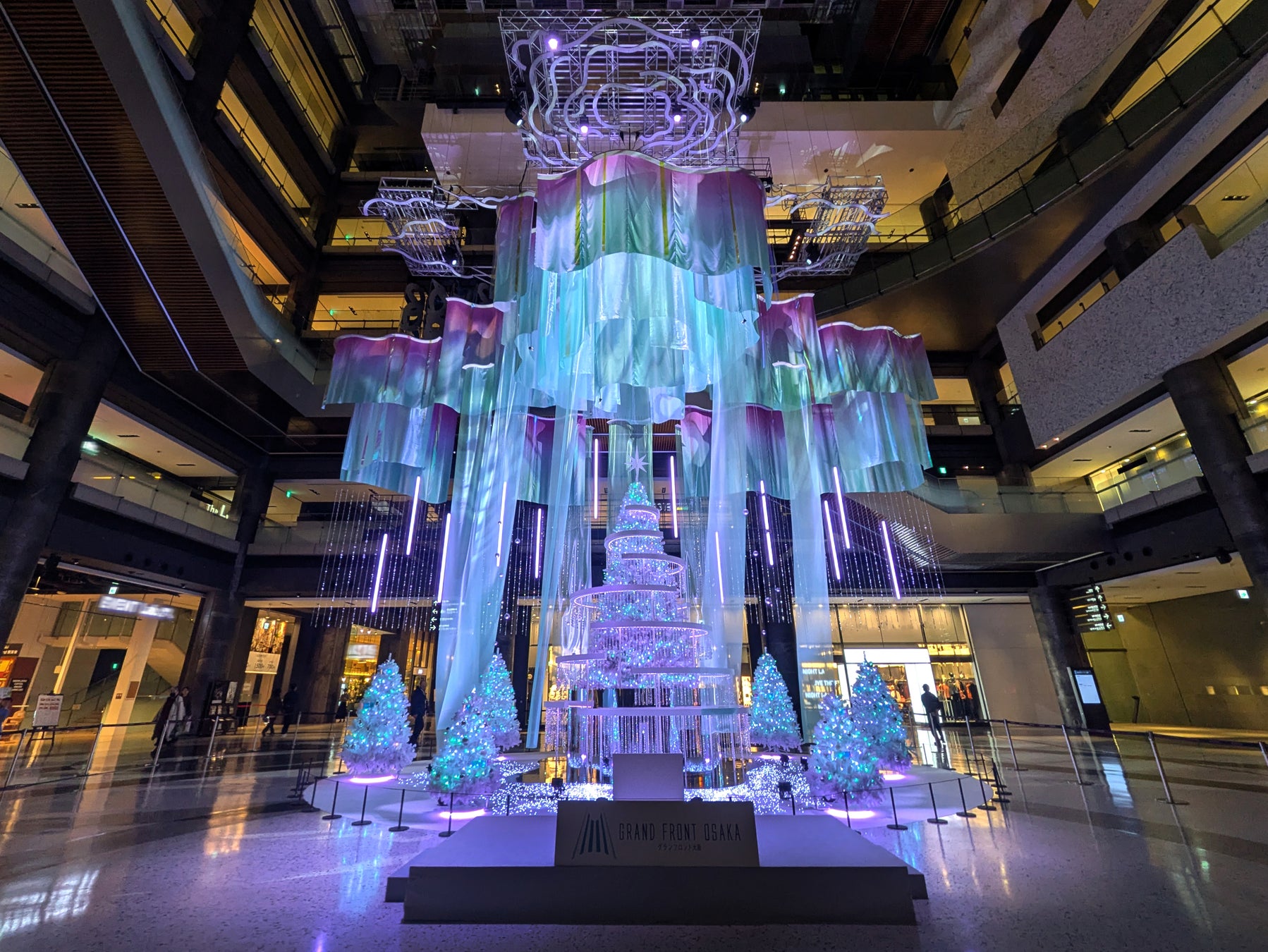 見どころ:今年のグランフロント大阪のクリスマス、ツリーのテーマは「Winter Prism」。幻想的なオーロラをモチーフに、揺らめく光のベールが空間を彩ります。うつろう輝きが、まちを訪れる一人ひとりに特別な瞬間をお届けします。