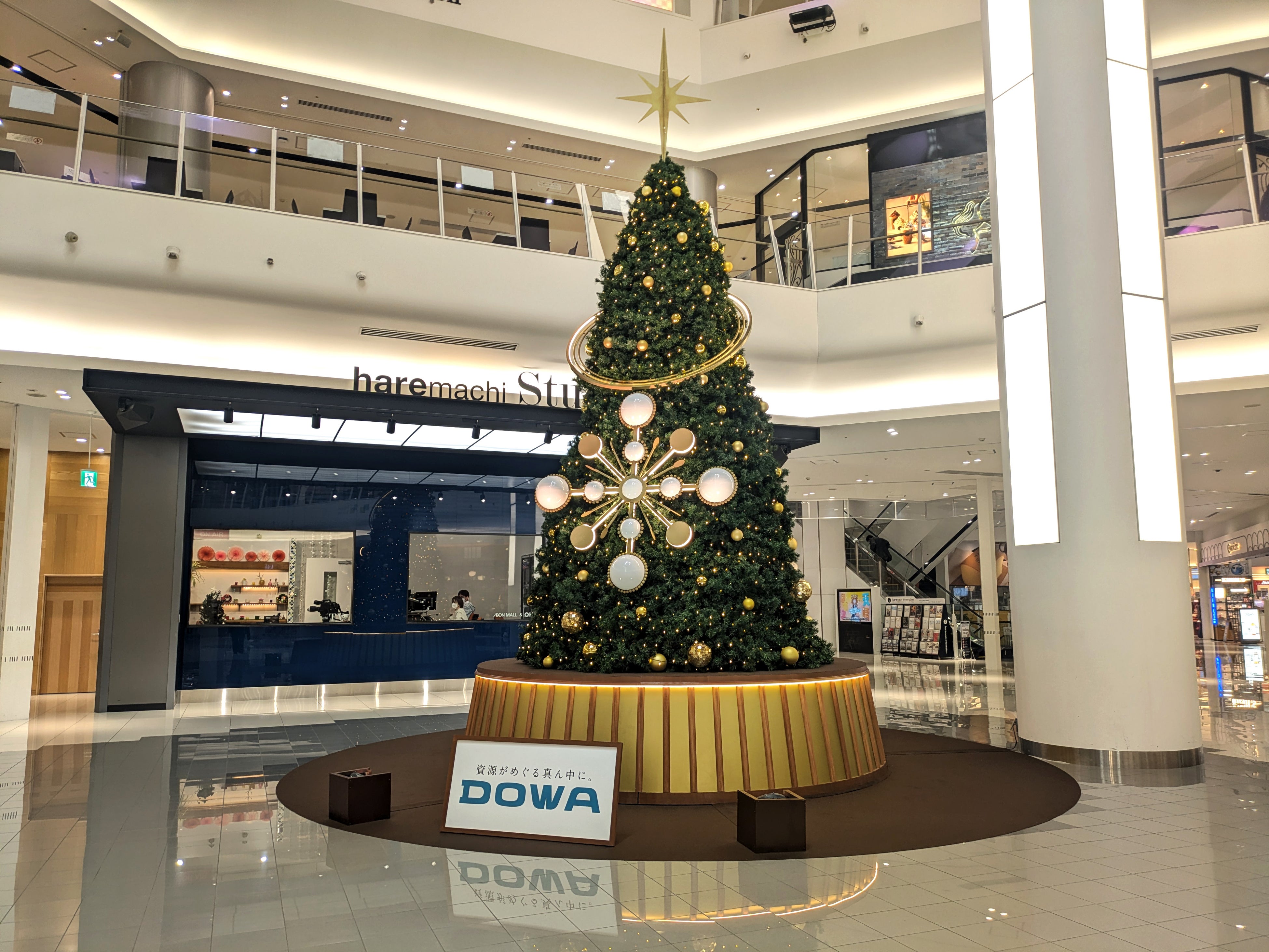 見どころ:クリスマスらしいオーセンティックなゴールドの輝きと、あたたかなウッドの質感がマッチした、 haremachiのためのオリジナルデザイン。ベルギーの世界的イルミネーションメーカー「Globall concept(グローボール・コンセプト)」と、「VELVETA DESIGN(ベルベッタ・デザイン)」が共同開発した上質なプロダクトコレクション”Shinju-真珠-”を用いたクリスマスツリー。