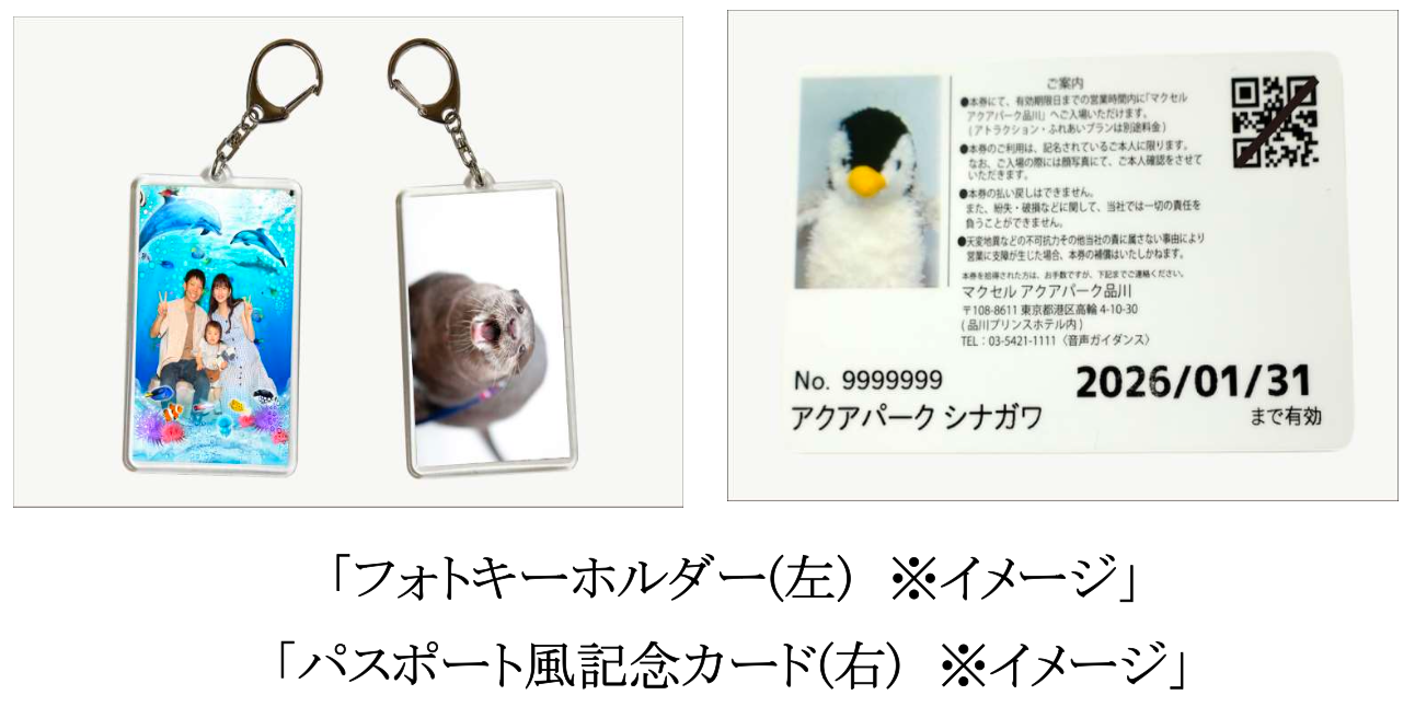 当日撮影したご家族写真を使った、世界にひとつだけのフォトキーホルダー。“はじめての水族館”の瞬間を、いつでも手に取って思い出せる記念品です。さらに、プラン当日の日付が刻まれた「パスポート風記念カード」もプレゼント♪