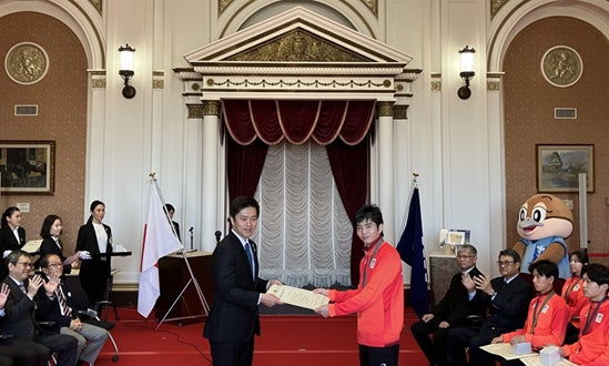 株式会社ジェイエア(本社:大阪府池田市、代表取締役社長:武井 真剛、以下「J-AIR」)所属の太田 歩(おおた あゆむ)選手が、国際スポーツ大会「東京2025デフリンピック」での活躍を評価され、大阪府より「大阪感動大賞」を受賞しました。2022年のブラジル大会に続き、自身2度目の受賞となります。本日、大阪府庁舎にて執り行われた贈呈式では、府民に深い感動を与えたとして賞詞が授与されました。