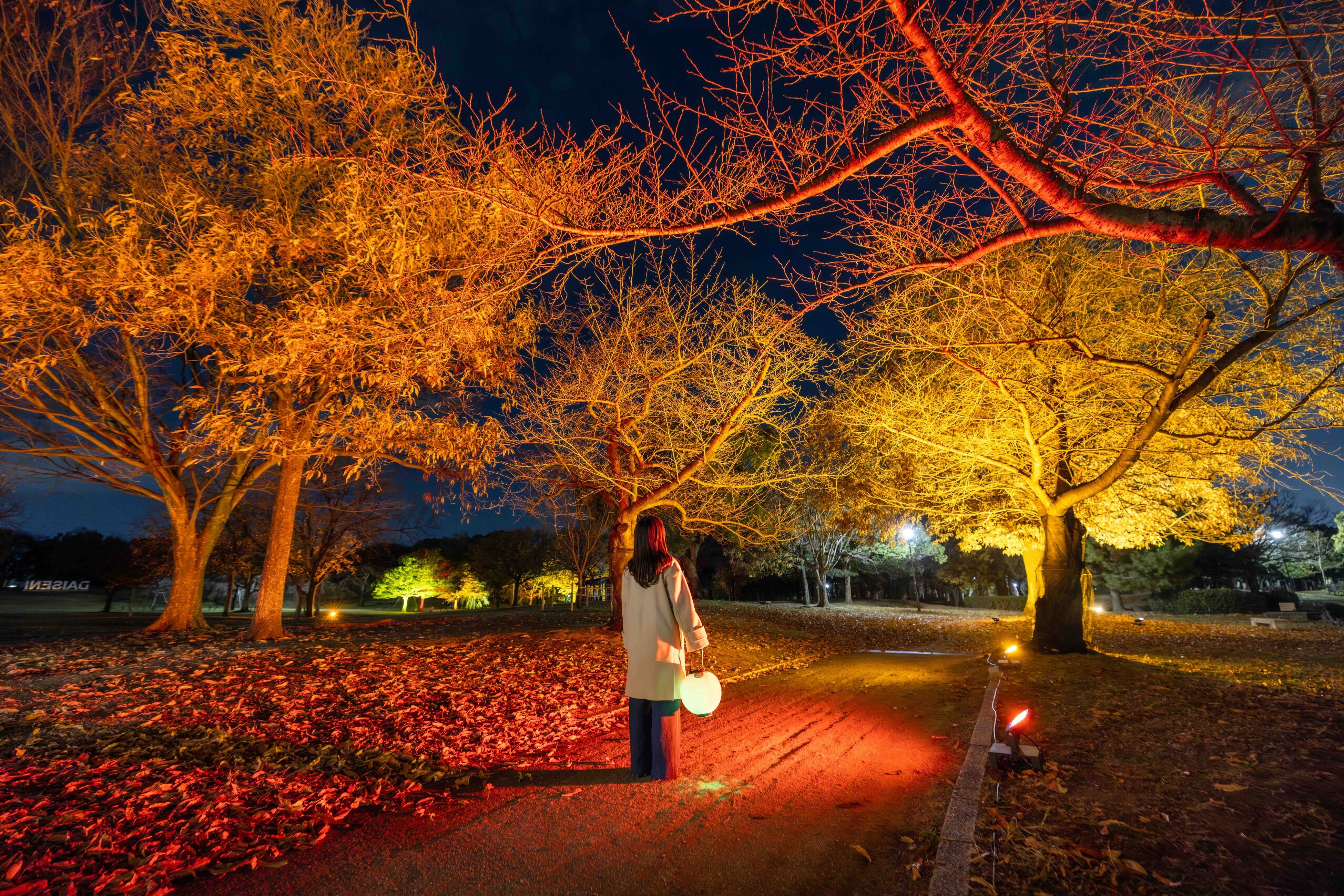本イベントでは、NAKEDがこれまで国内外で培ってきたプロジェクションマッピング、ライトアップ、体験型アート演出のノウハウを活かし、大仙公園の大芝生広場一帯を、冬の夜ならではの幻想的な光の空間へと変貌させます。会場では、公園内の風景や自然と調和する光の演出に加え、NAKEDの体験型アートイベントで高い人気を誇る「NAKEDディスタンス提灯®」 を手に園内を巡ることで、来場者自身が“光の演出の一部”となる没入型の体験を提供します。