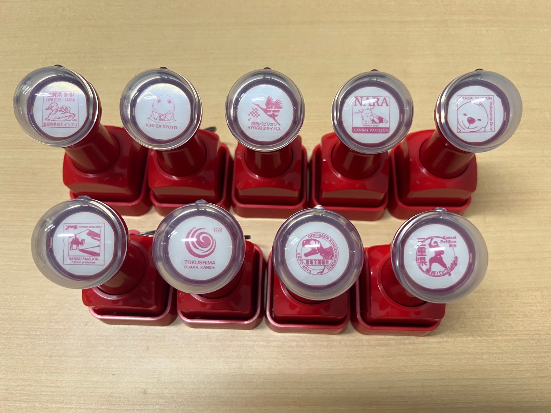 関西パビリオンスタンプのほか、“ヨルダンパビリオン”、“いのちの遊び場クラゲ館”のス