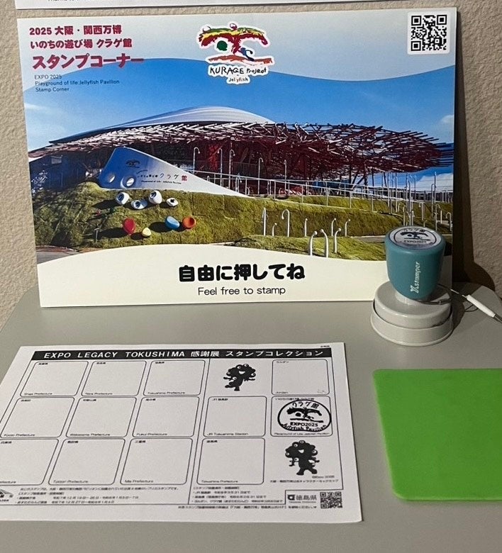 関西パビリオンスタンプのほか、“ヨルダンパビリオン”、“いのちの遊び場クラゲ館”のス