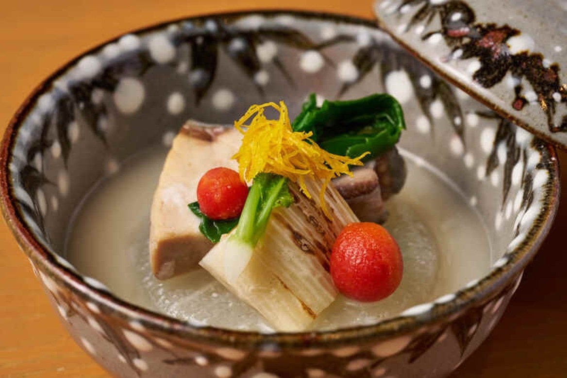 温故知新をコンセプトに、受け継がれてきた日本料理の本質とこの地の恵みに宿る豊かさをあらためて見つめ、今という時代の輪郭を映す料理観・技法・表現を通じて、奥行きとしなやかさを備えた食体験をお届けいたします。四季折々の表情豊かな中庭をのぞむ店内は和の趣を感じる落ち着いた空間。「日本料理」のテーブル席とカウンター席、「鉄板焼」と3つのシーンにわかれ、お客様のスタイルや用途に合わせてお選びいただけます。