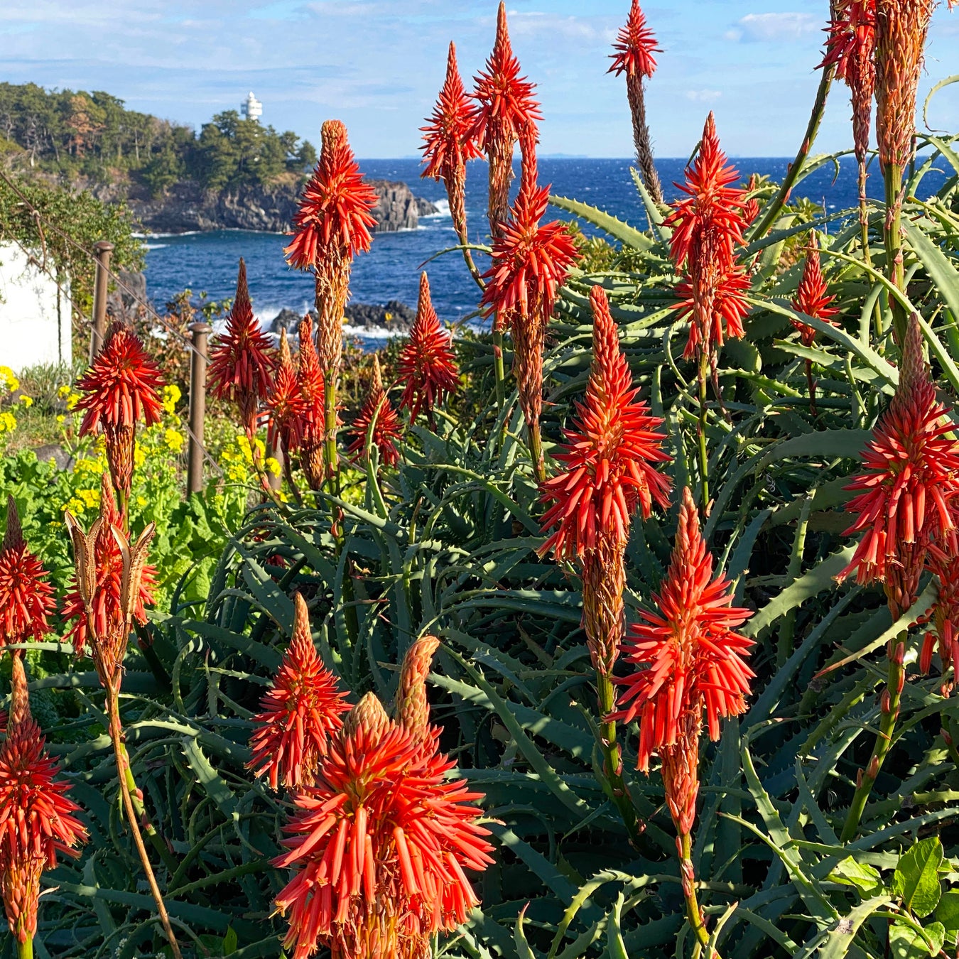 そしてキダチアロエは1978年10月から植栽を始め、現在は園内各所に約1,000株が群生しており、どちらもただいま見頃を迎え、例年のペースでは2月中旬頃まで楽しむことができます。
