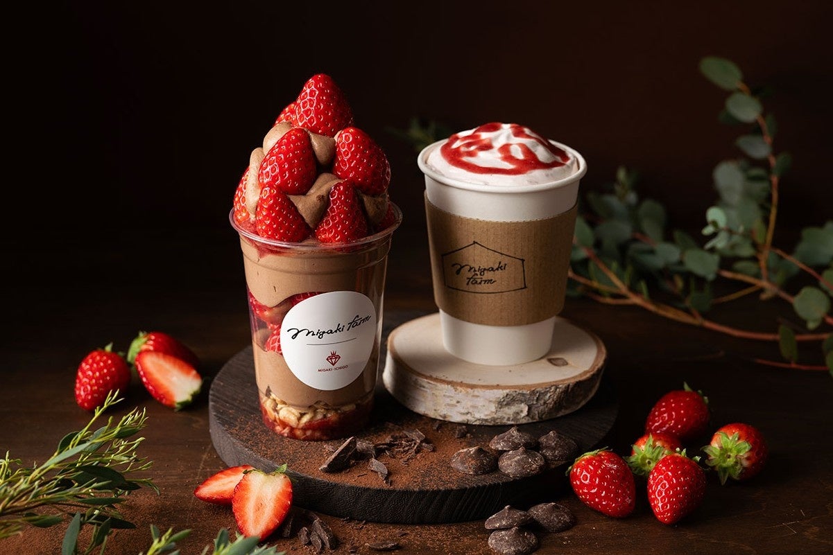 また、1・2月の期間限定メニューとして、濃厚なチョコクリームと完熟ミガキイチゴのマリアージュが楽しめる「ミガキイチゴチョコパフェ」や「いちごココア(HOT)」も販売いたします。