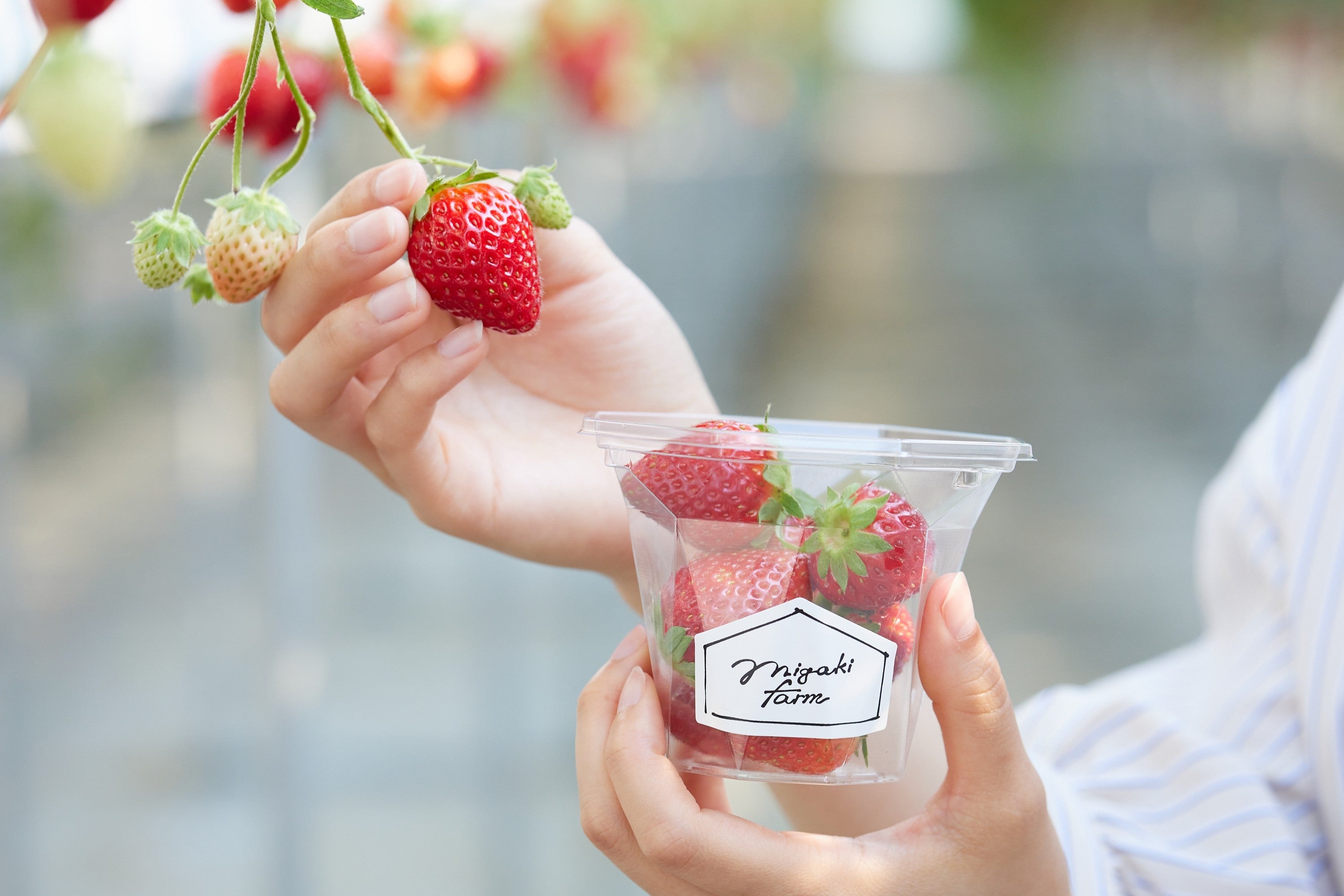 「ミガキイチゴ」の生産農園で完熟いちごを堪能できる