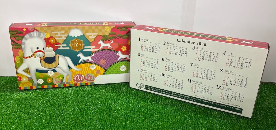 紙を引くという意味合いを込めており、紙(神)と一緒に新年の良い運気も引いてほしいという願いが込められています。また箱の裏面には、2026年のカレンダーが印刷されており、ティッシュの使用が終わった後もカレンダーとして使用が出来る便利品となっています。