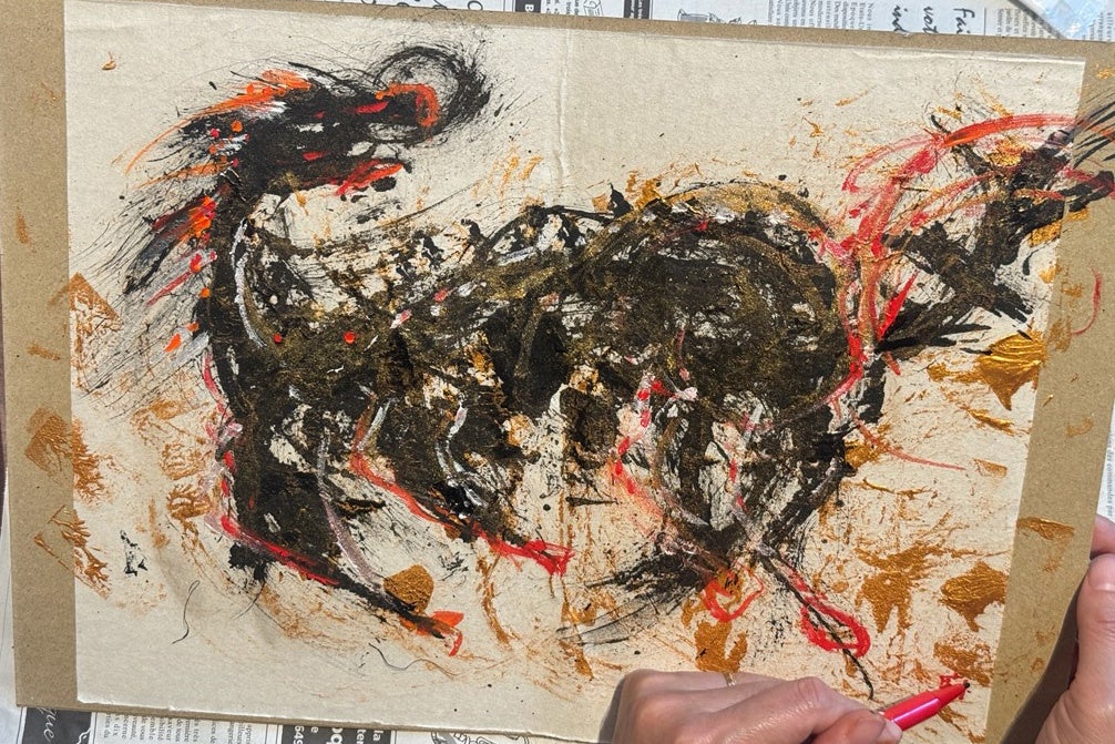 ヨックモックミュージアム(東京都港区、代表理事:藤縄洋子)は、心を元気にするプログラム「YMアートセッション」を毎月開催しています。芸術の医学的な効用に着目した「臨床美術」を基礎としたアートセッションです。五感を刺激することで右脳が活性化し、ストレス解消やリフレッシュ効果が期待できます。気軽にアートを楽しみたい方、創造性を高めたい方、心が疲れたなと感じている方……どなたにも、自由にご自分を表現していただくことで、心を元気にするプログラムです。2026年2月のYMアートセッションは、「絵馬屏風」です。「馬」の文字をきっかけにして馬のイメージを屏風絵で表現します。筆以外の素材を用いた墨の表情を体験してみましょう。