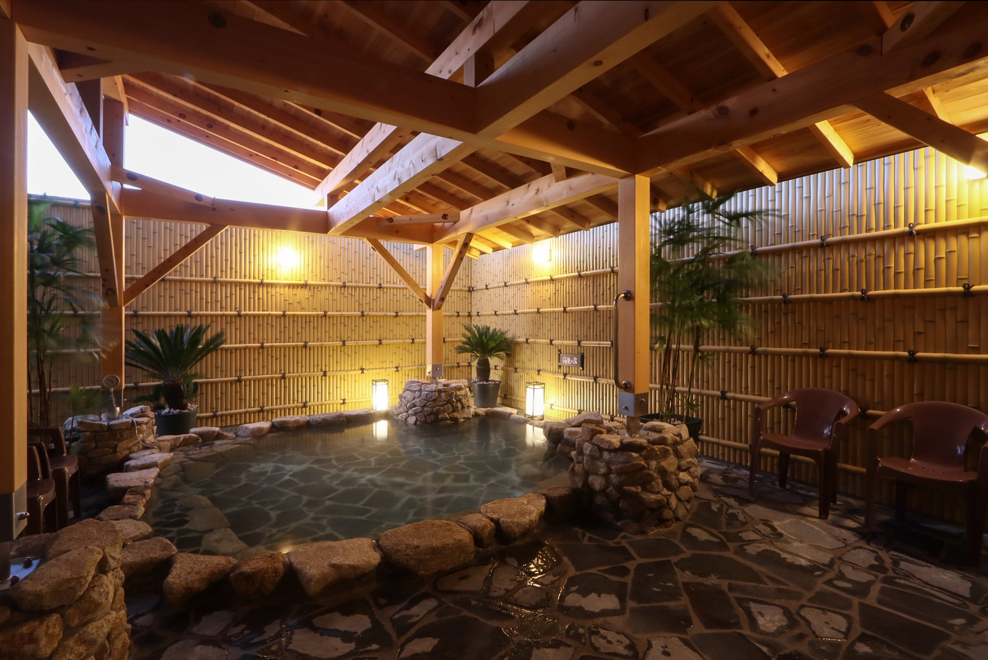 天然地下水 有明海の塩湯「旅人の湯」 入浴条件:男女別 営業時間:15:00~翌2:00 / 翌5:00~10:00 男性・女性それぞれの大浴場内に露天風呂・サウナあり |