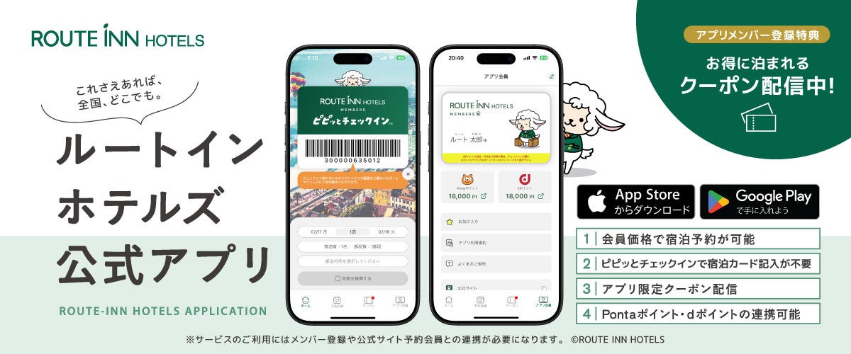 この機会に是非ルートインホテルズ公式アプリをご利用ください。