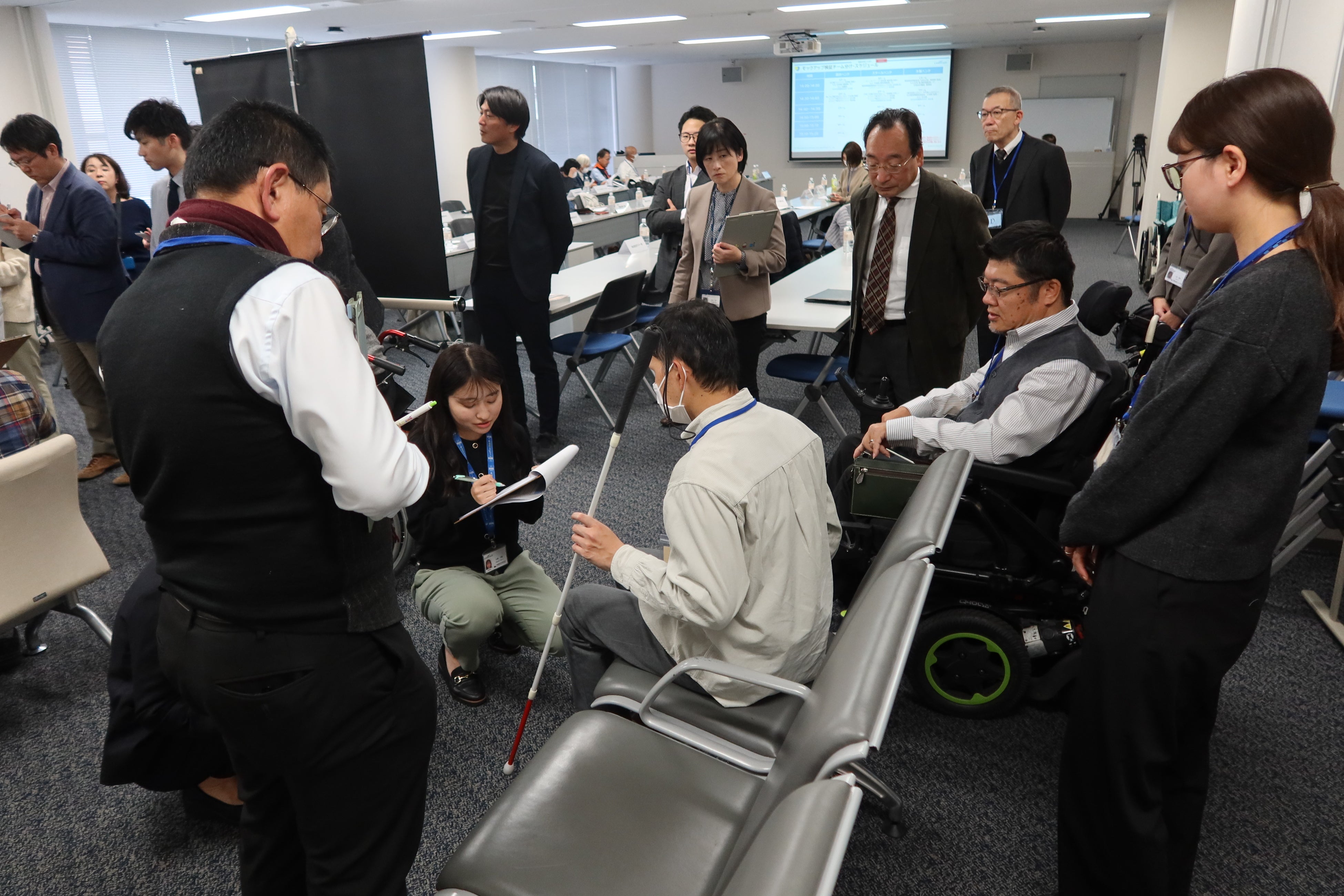 従来の優先席で生じていた「表示が目立ちにくい(健常者が占有してしまう)」、「深く腰掛ける設計のため、立ち上がるのが大変」といった課題の解消に向けて、2024年12月にUD懇談会にて検証会を実施し、多様な属性の方々にさまざまな種類のベンチを試していただき、データを収集しました(表示の色、座面の高さ、必要な付加機能など)。得られたデータをもとに、メーカー協力のもとセントレア独自の仕様を多数盛り込み、新たな優先席を製作しました。