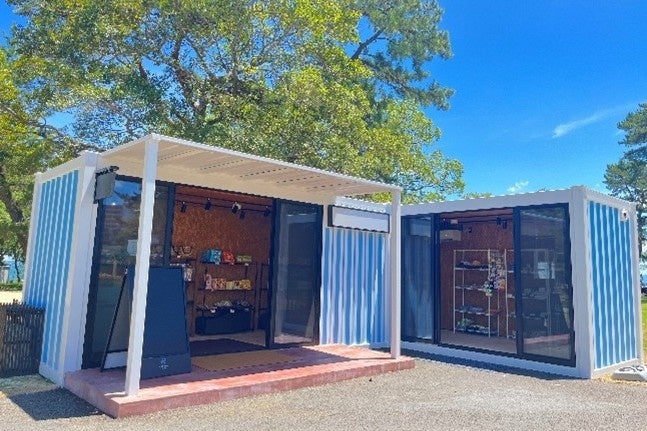 コンテナを活用した体験型宿泊施設です。全客室オーシャンビューで、離れ形式のコテージタイプとして設計しており、すべての客室で源泉かけ流し温泉をご利用いただけます。一部の客室には専用の露天風呂を備えており、滞在そのものがアクティビティとなるような、五感で楽しむ新しい滞在体験を提供いたします。