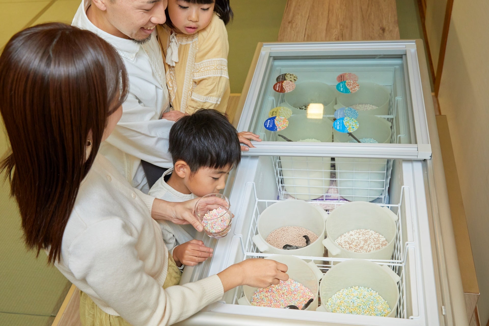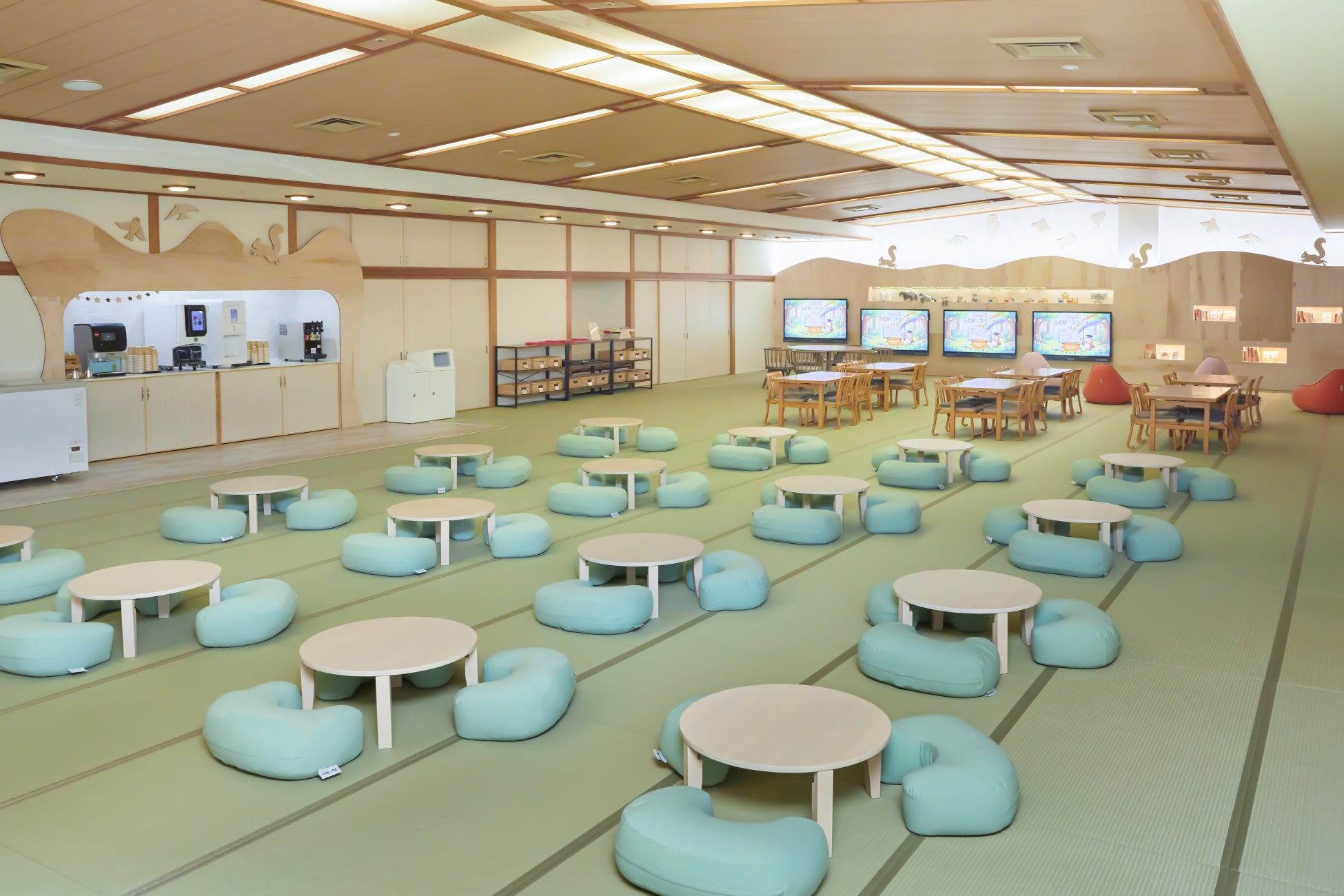 新設するラウンジは木と畳の温かみのある空間で、親子三世代でともに「読む・遊ぶ・くつろぐ」を楽しめる多目的ラウンジです。絵本や児童書、自然・旅・地域にまつわる書籍など、親子で楽しめる幅広いジャンルの本を揃えた読書スペースに加え、約3,000冊のコミックが並ぶコミックコーナーなど、ライブラリー機能も備えます。木の温もりを感じるおもちゃや、家族で楽しめる知育カード・ボードゲームをご用意したエリアでは、乳幼児期の五感の育ちを促す遊びを体験できます。また、大型モニターを使った「デジタルお絵描きスタジオ」では、画面いっぱいに自由に描いた絵をAIが自動音声で解説するなどワクワク体験を楽しむことができます。さらにドリンクバーやビールサーバー、「ディッピンドッツアイス」を自分好みにカスタマイズできるスイーツコーナーも併設。お子様だけでなく大人の方にも心地よくお過ごしいただける滞在型ファミリースペースを実現します。