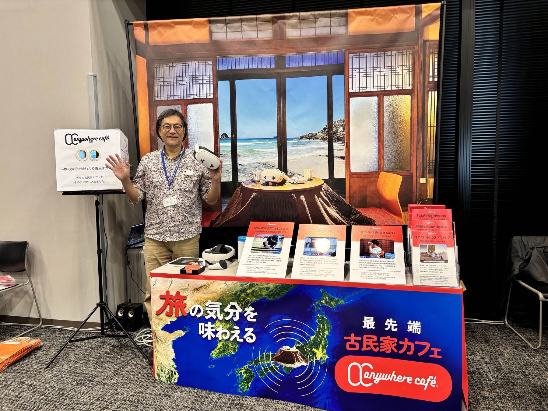 anywhere caféは、2025年12月17日(水)に開催された「VRChat Japan Business Experience」に出展いたしました。当日は、本取り組みを含め、リアル店舗とVRChatを組み合わせた運用事例を大阪の実店舗を再現したミニチュアとVRゴーグルで体験していただきながら、バーチャルを活用した新たな観光業の可能性を示した。