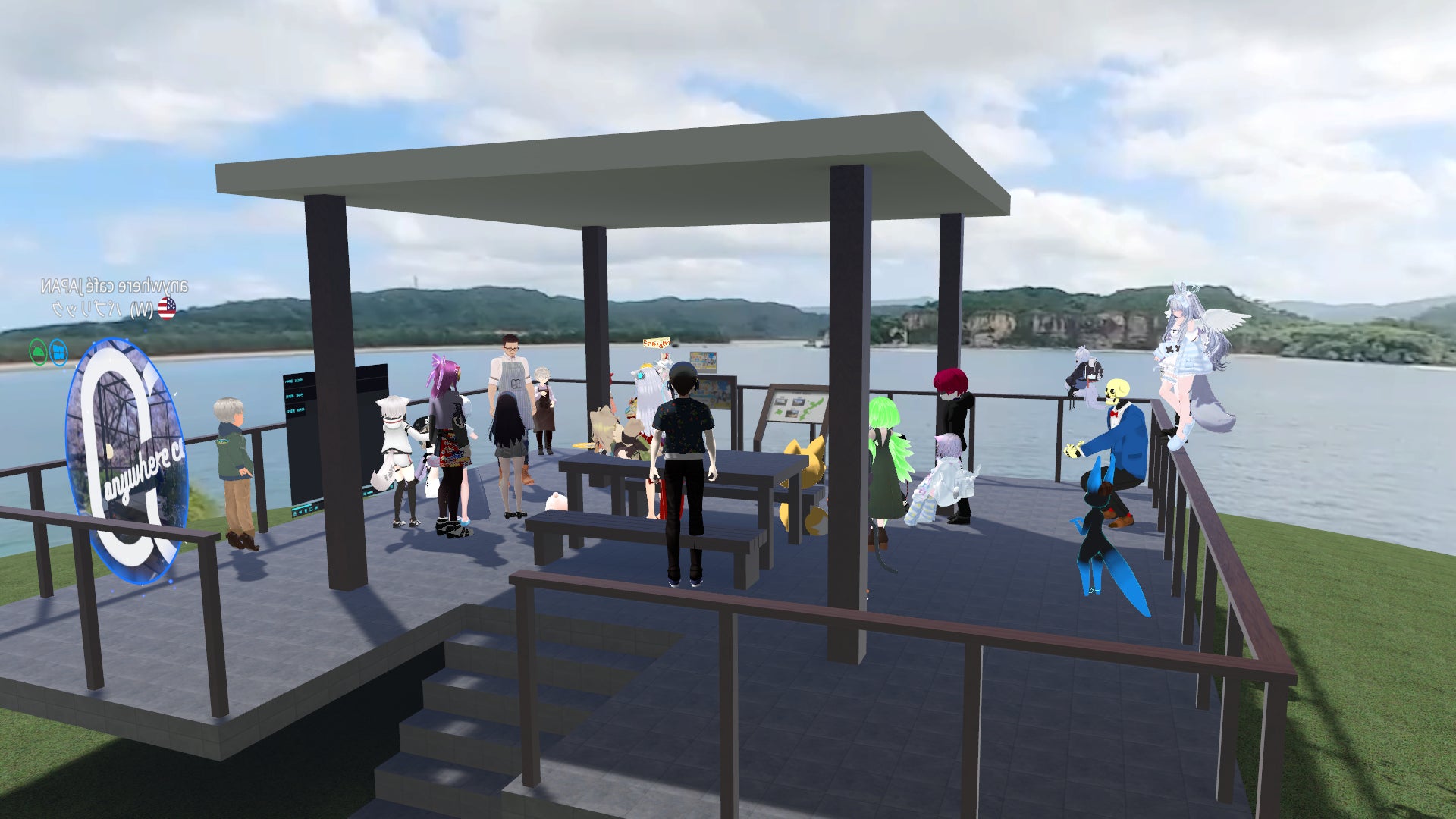 VRChat内の「anywhere café JAPAN」には、沖縄県内の参加者に加え、日本だけではなくアメリカ、韓国、フィリピンなど国内外問わず延べ20名強が来場しました。参加者はアバター同士で会話を交わしながら、ステージや企業出展の様子を鑑賞。映像をきっかけに、沖縄やイベント内容について自然と交流が生まれる場となっていました。