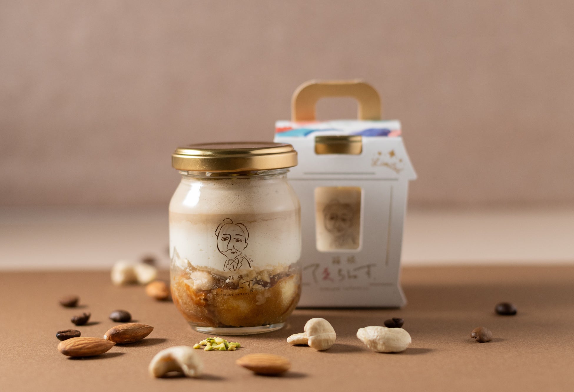 「ティラミス ムースカッフェ」は、箱根てゑらみすオリジナルの焙煎豆から抽出したエスプレッソが香るコーヒームース、なめらかな口当たりの当店特製ティラミスクリーム、コーヒーのほろ苦さがアクセントのスポンジからなる3層仕立てのティラミスです。トッピングにはピスタチオやアーモンド、カシューナッツを贅沢に使用しています。コーヒーの芳醇な香り、ナッツの香ばしさと食感をお愉しみください。