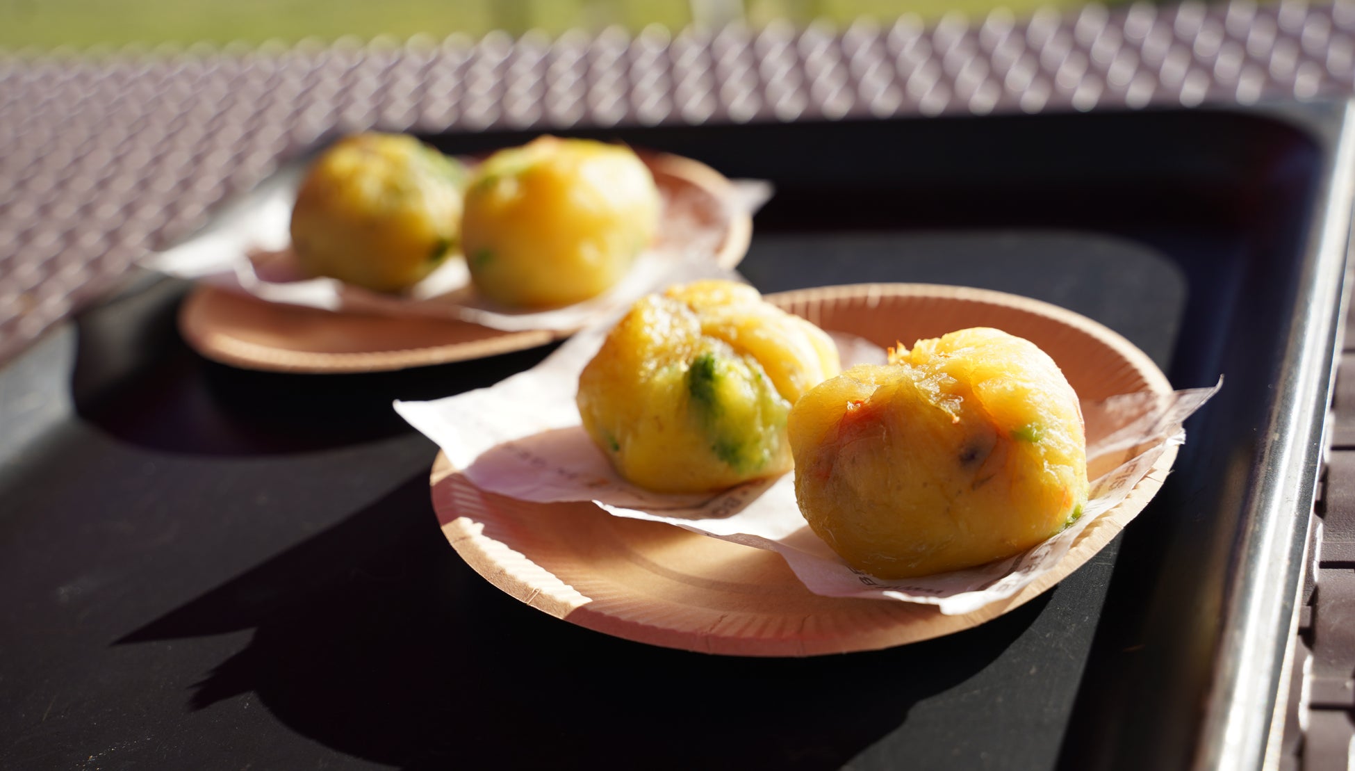 おいもの限定グルメをはじめ、本場大阪道頓堀よりくくるのたこ焼も登場︕