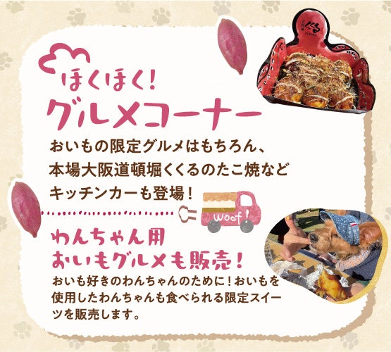 わんちゃんと一緒に楽しめるおいもグルメもご用意。家族みんなで、そして大切なわんちゃんと一緒に、“おいも時間”を満喫しませんか?