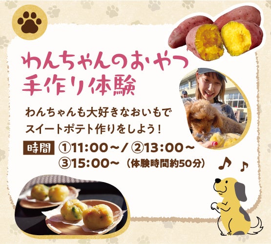 わんちゃんと一緒に楽しめるおいもグルメもご用意。家族みんなで、そして大切なわんちゃんと一緒に、“おいも時間”を満喫しませんか?
