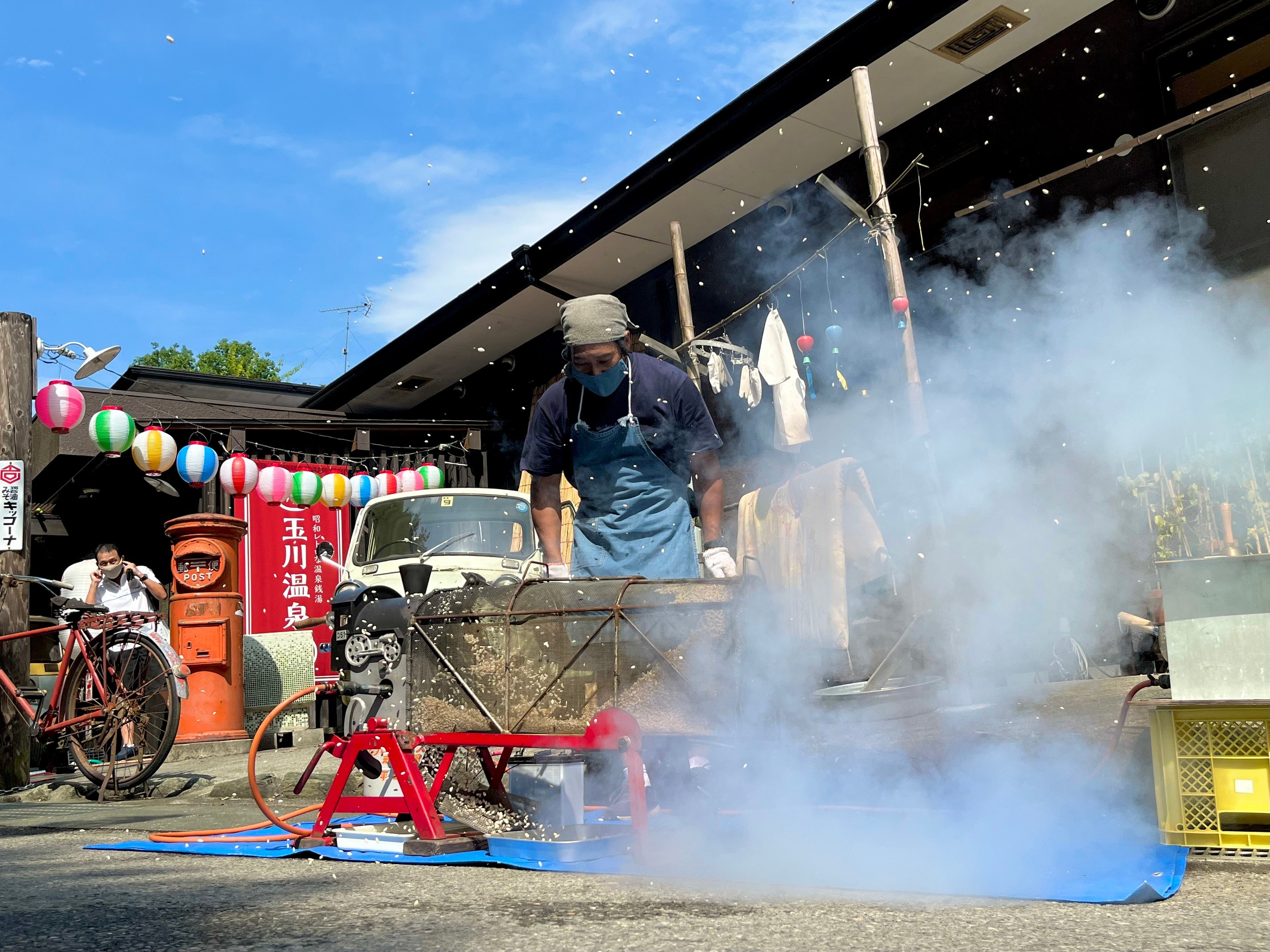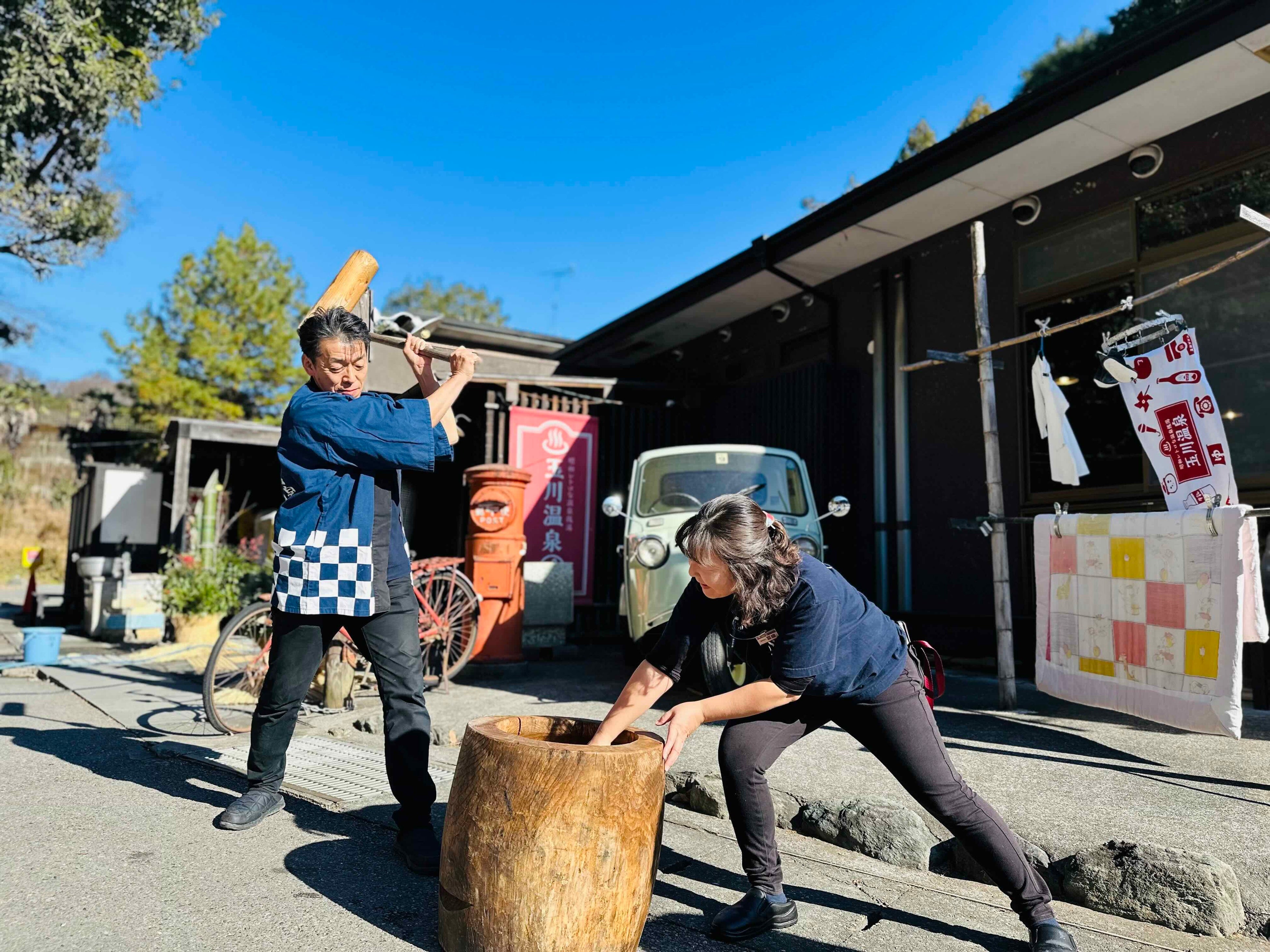 昭和の時代が懐かしい世代にも、また昭和を知らない世代にも、昭和の魅力を発信したいという想いから、さまざまなイベントを開催します。お正月定番の餅つきは、玉川温泉の食堂で使用している「里山ぐるぐるスマイル農園」さんから仕入れた「古代米」を使用。杵と臼でお客さまと一緒にお餅をつき、できたてのお餅を無料配布します。他にも、「縁日」「ちんどん」や、昭和の懐かしい「ポン菓子」「紙芝居」など、イベント盛りだくさんでお正月を彩ります。